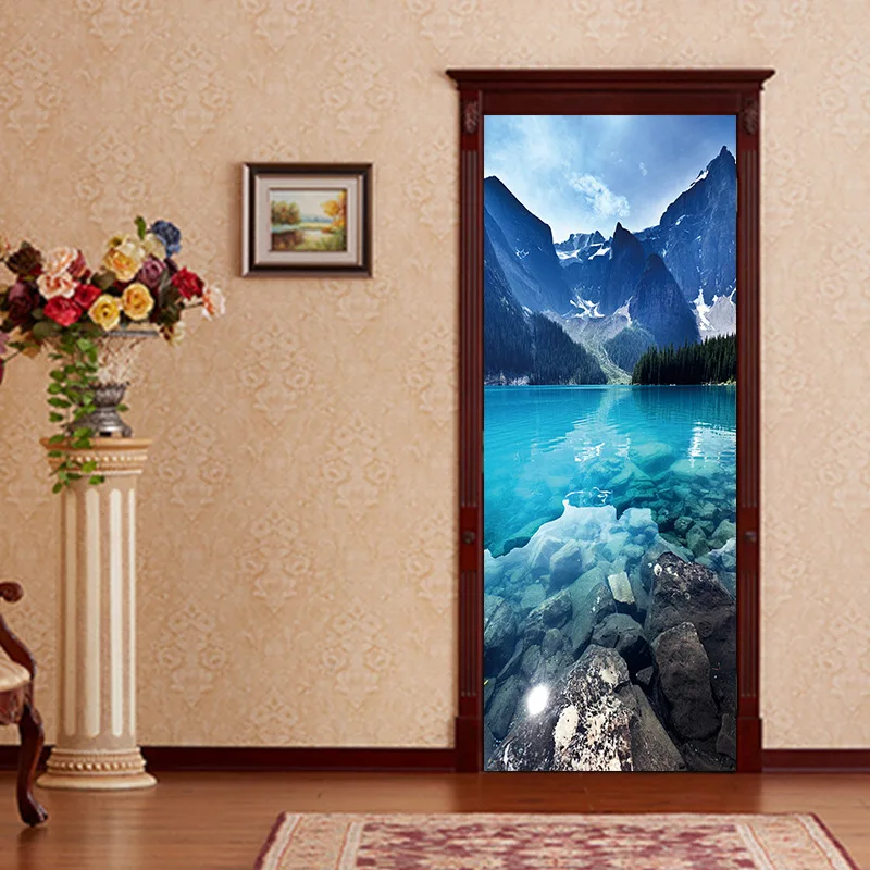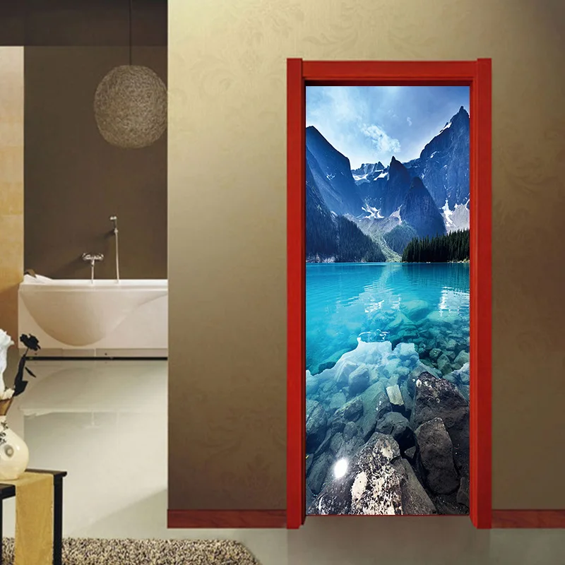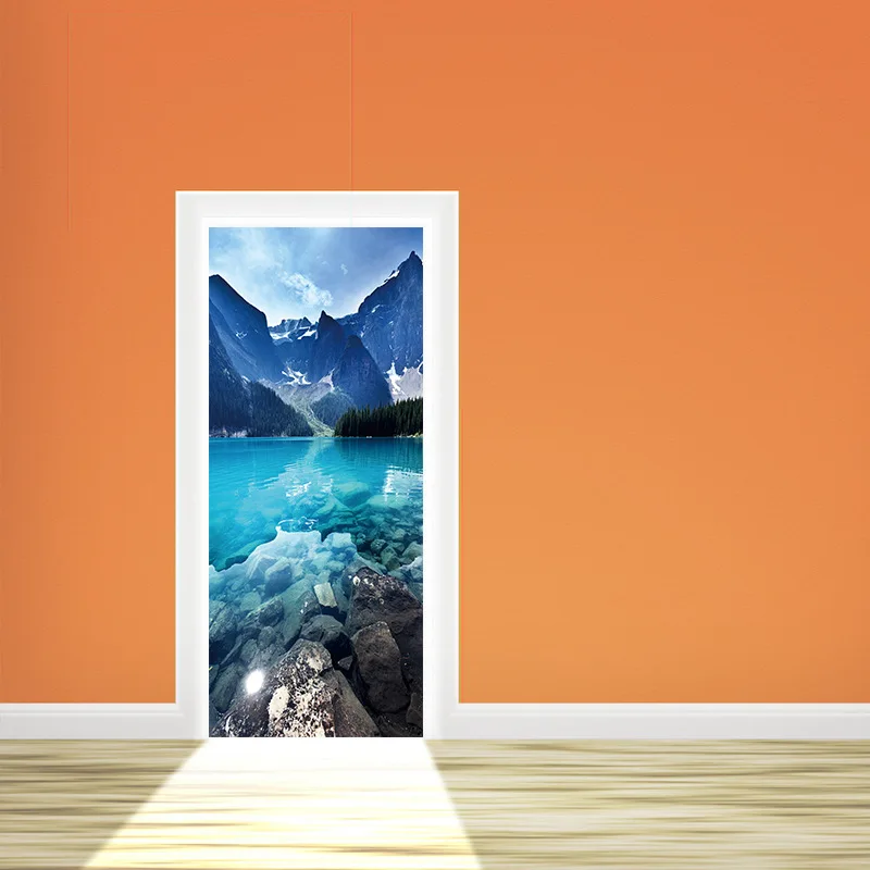 Comprar Portas De Madeira 3D Refurbish Mountain lake Paisagem Decalques Porta Auto Adesivo Decorativo Decalque Da Parede Mural Papel De Parede À Prova D Água Baratas Online Preço.