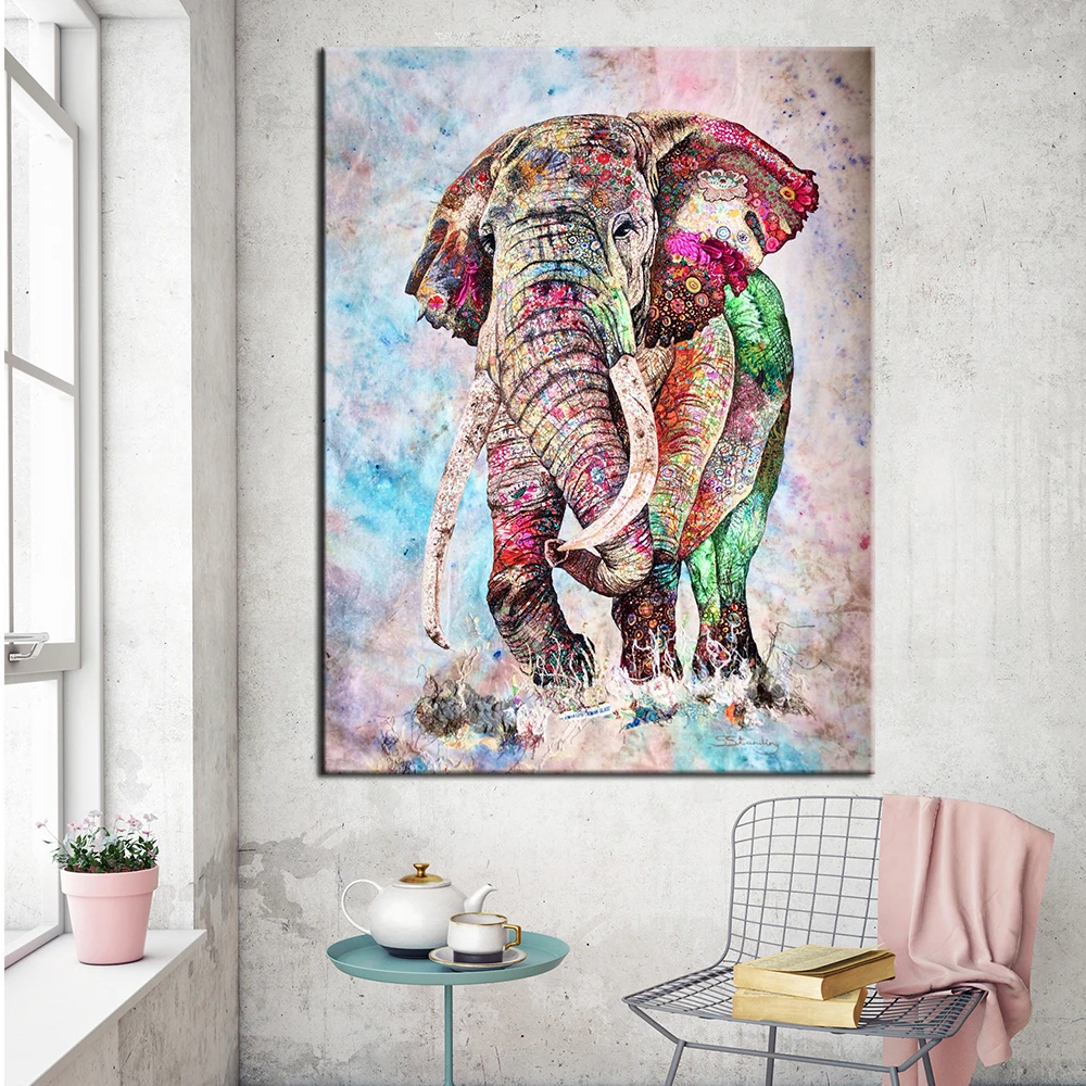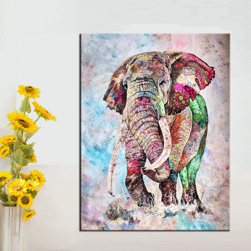 Comprar QKART Wall Art Decor Elefante Cartazes e Impressões Pintura A Óleo sobre Cópias Da Arte Da Lona Parede Pictures para Sala de estar Canvas pintura Baratas Online Preço.