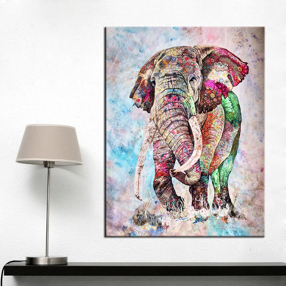 Comprar QKART Wall Art Decor Elefante Cartazes e Impressões Pintura A Óleo sobre Cópias Da Arte Da Lona Parede Pictures para Sala de estar Canvas pintura Baratas Online Preço