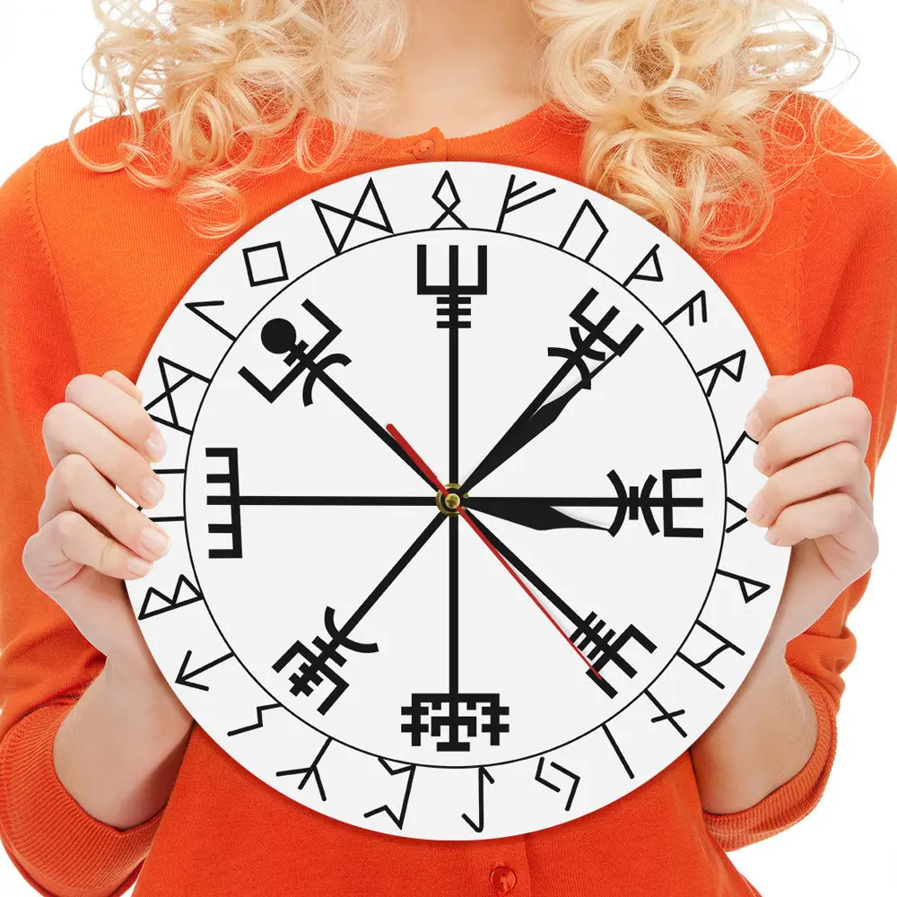 Comprar Viking Pagão Asatru Círculo Relógio De Parede Bússola Vegvisir Rune Runic Norse Viking Mitologia Simples Relógio Moderno Relógio Leme de Temor Baratas Online Preço