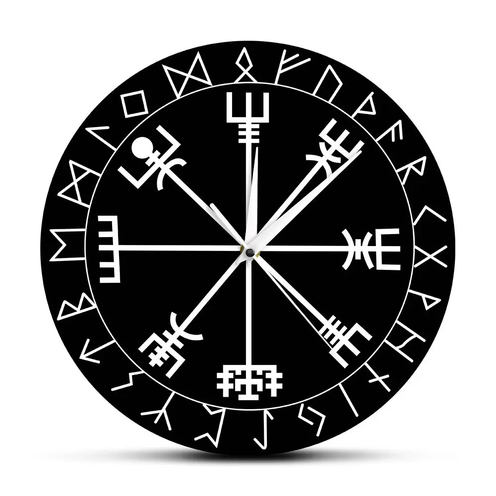 Comprar Viking Pagão Asatru Círculo Relógio De Parede Bússola Vegvisir Rune Runic Norse Viking Mitologia Simples Relógio Moderno Relógio Leme de Temor Baratas Online Preço.