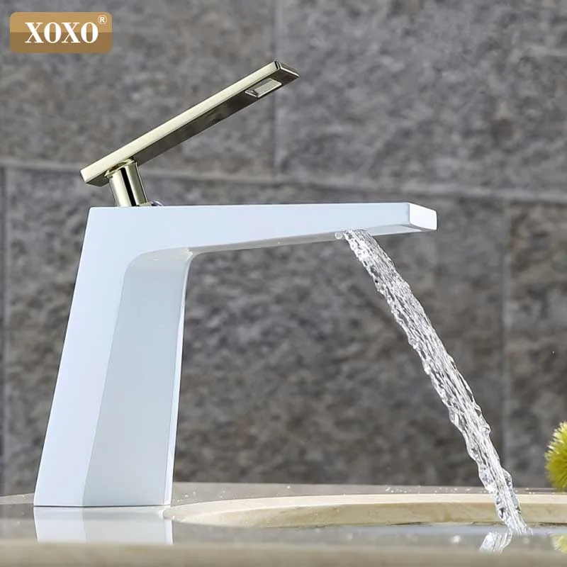 . Melhor XOXO preto branco banheiro basinfaucet Oco forma bath torneiras Cachoeira único punho água tap mixer 80015 Barato Online Preço.