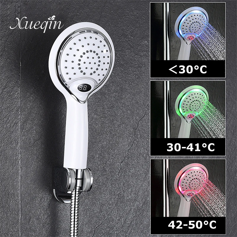 . Melhor Xueqin 3 Alterar Cores LED Display Digital de Temperatura Temperatura Da Água Led Cabeça de Chuveiro Handheld Cabeça de Chuveiro Do Banheiro Barato Online Preço.