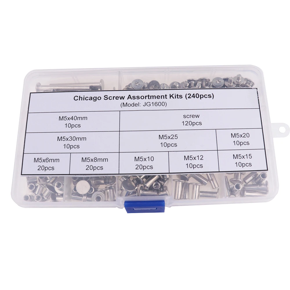 . Melhor 240 pcs Niquelado Parafusos Chicago Kits Sortimento, Rebite Snap Livros Bumbum Kits de Parafusos, Álbum de fotos de Ligação Parafuso Assort Kits Barato Online Preço.