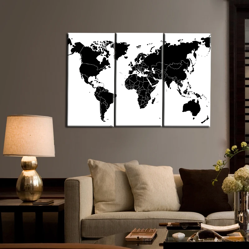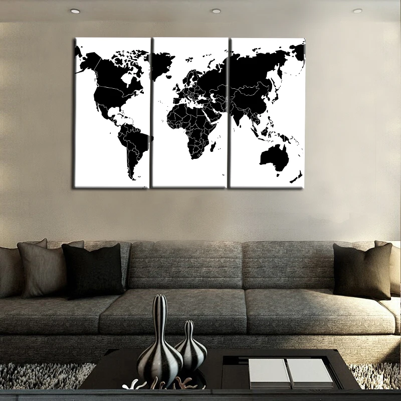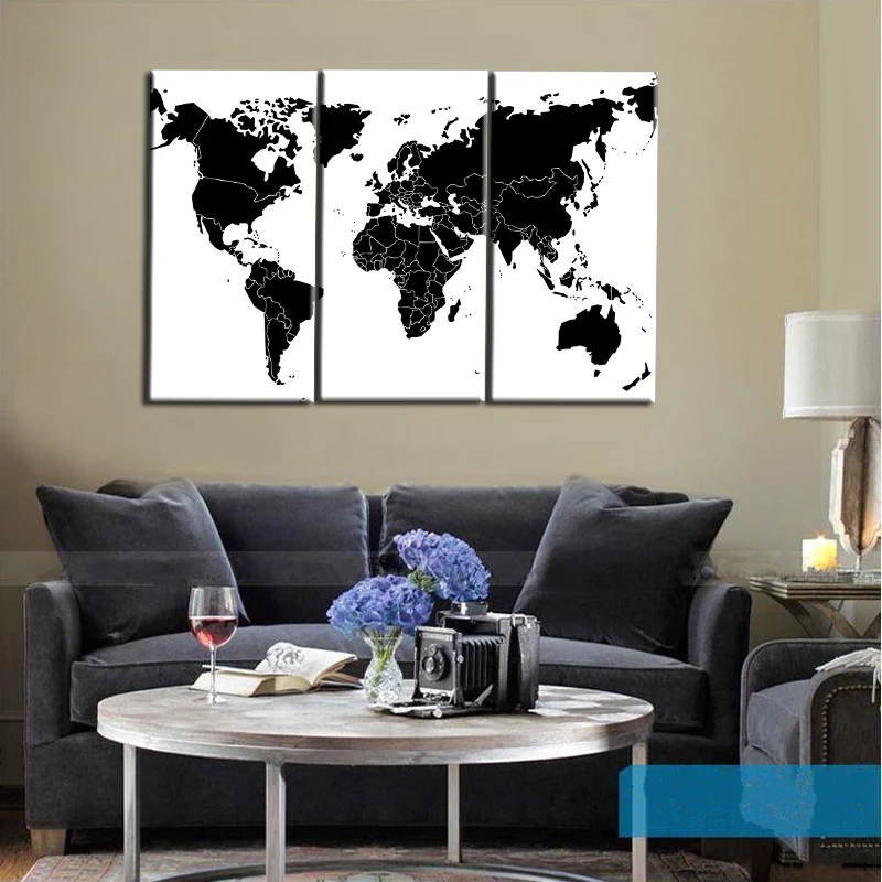 Comprar 3 Painel de Mapa Do Mundo de Impressão Digital Abstrata Preto e Branco Moderno Pinturas A óleo sobre Tela Retrato Da Arte Da Parede Sofá Casa Cuadros decoração Baratas Online Preço.
