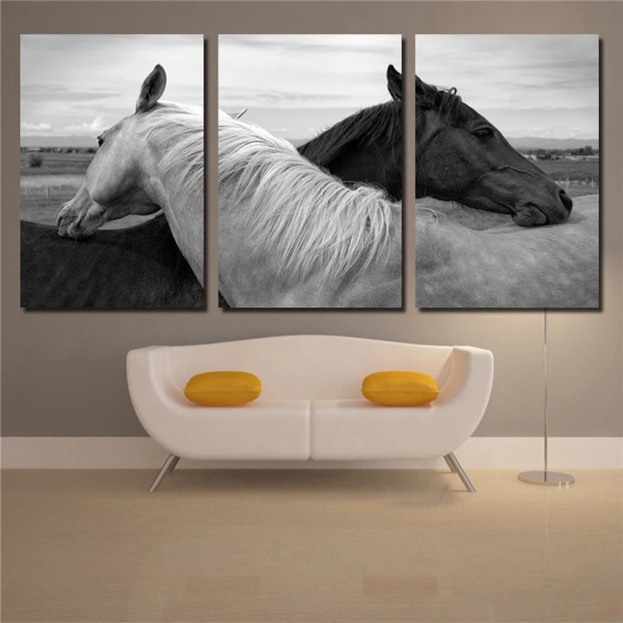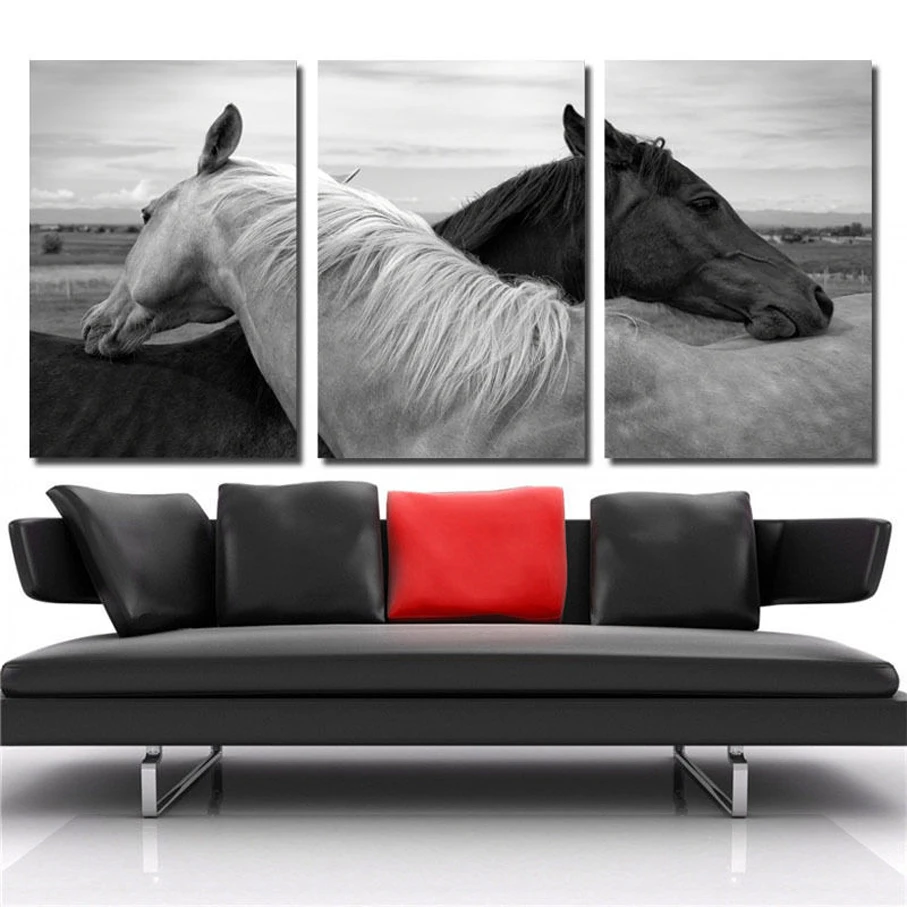 Comprar 3 Peça Modular Cnavas e Emoldurado Imagem Cópia Da Lona Pintura Imagem do cavalo de Impressão para Sala de estar Wall Art Imagem Animal decoração Baratas Online Preço.