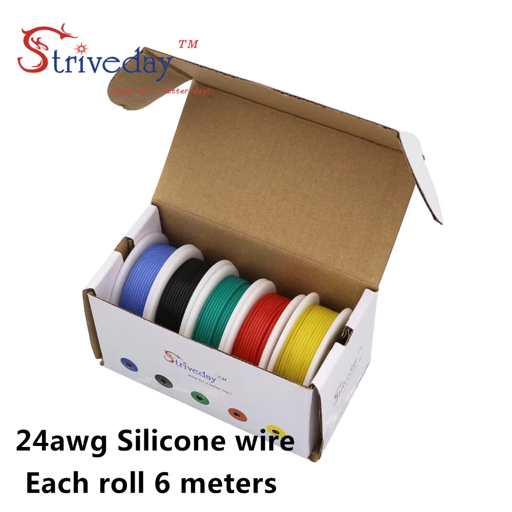 Comprar 30 meters box (mistura de 5 cores Kit Fio Encalhado) linha de Fio De Cobre Estanhado 24AWG Silicone Flexível cada cores 19.68 pés Baratas Online Preço.