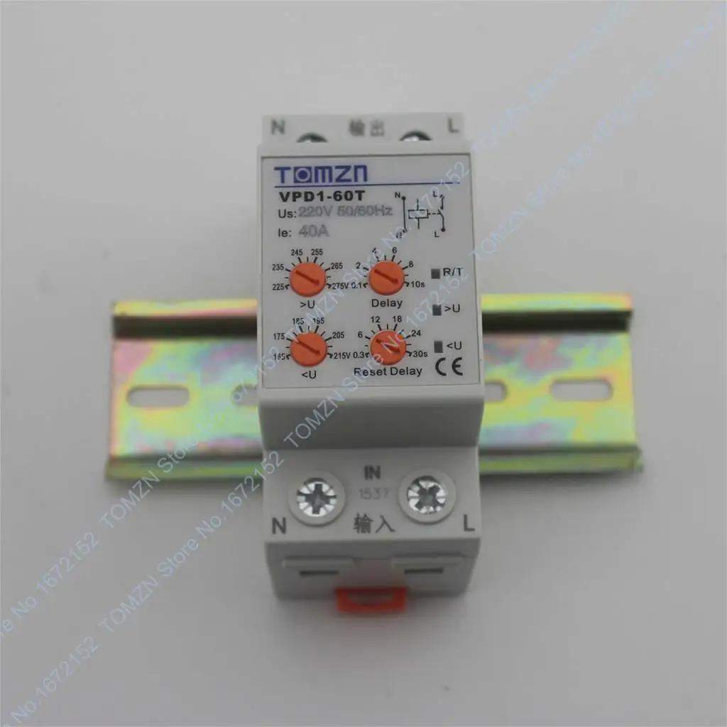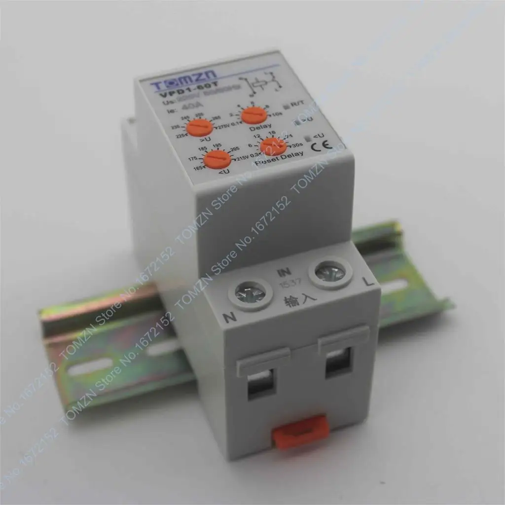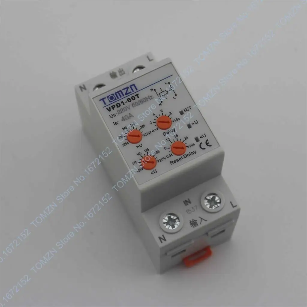 Comprar 40A 220 V trilho Din reconexão automática sobre a tensão e sob a proteção da tensão relé dispositivo de proteção com botão ajustável Baratas Online Preço.