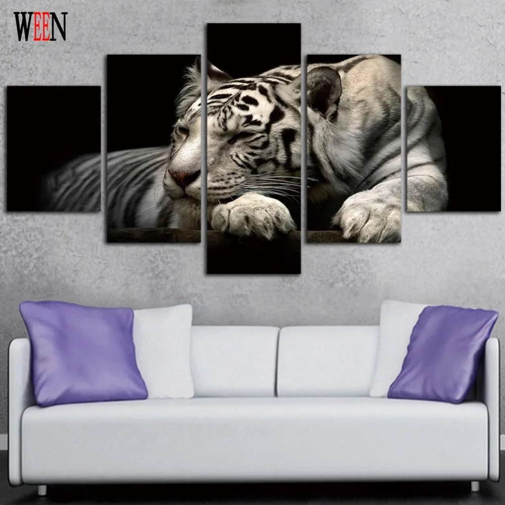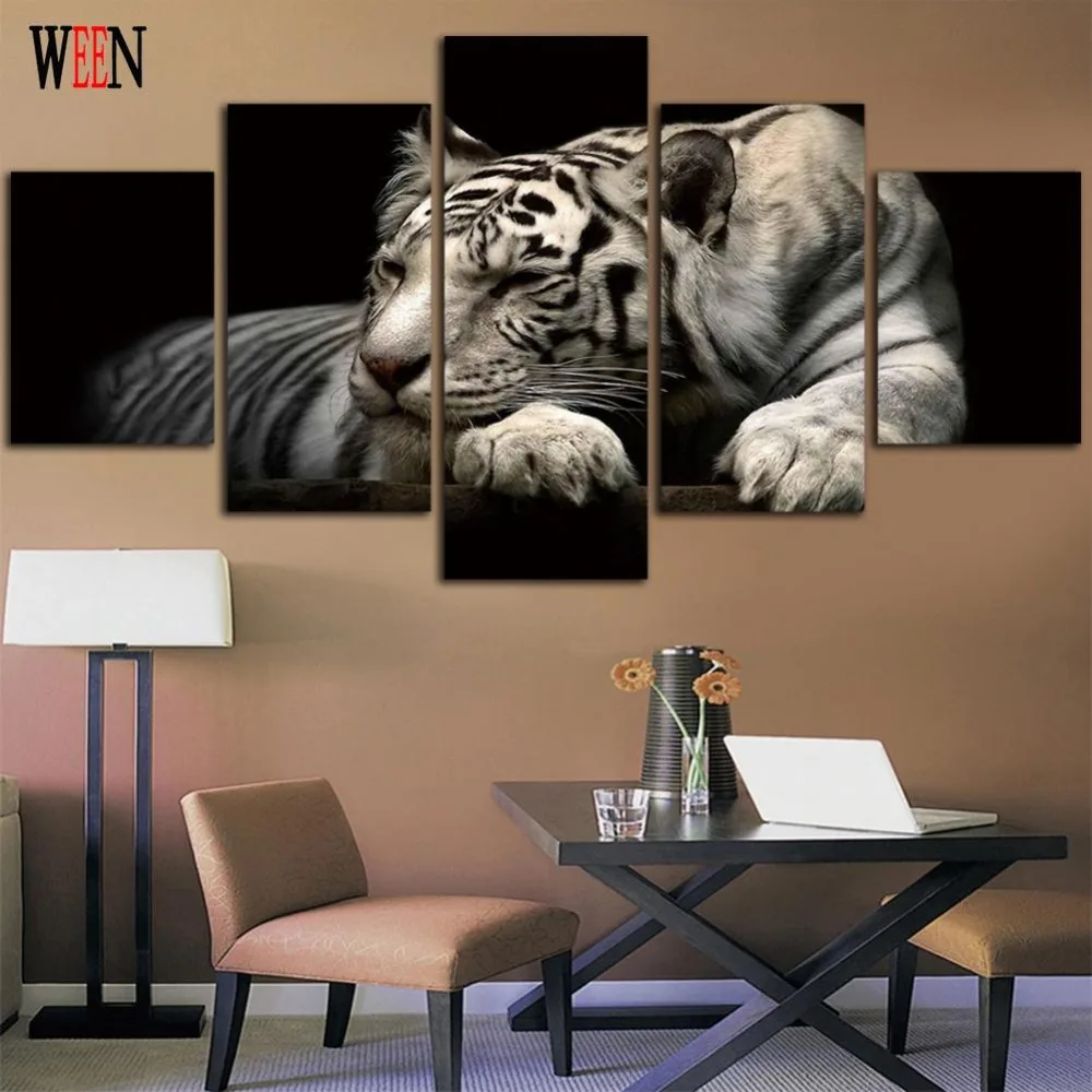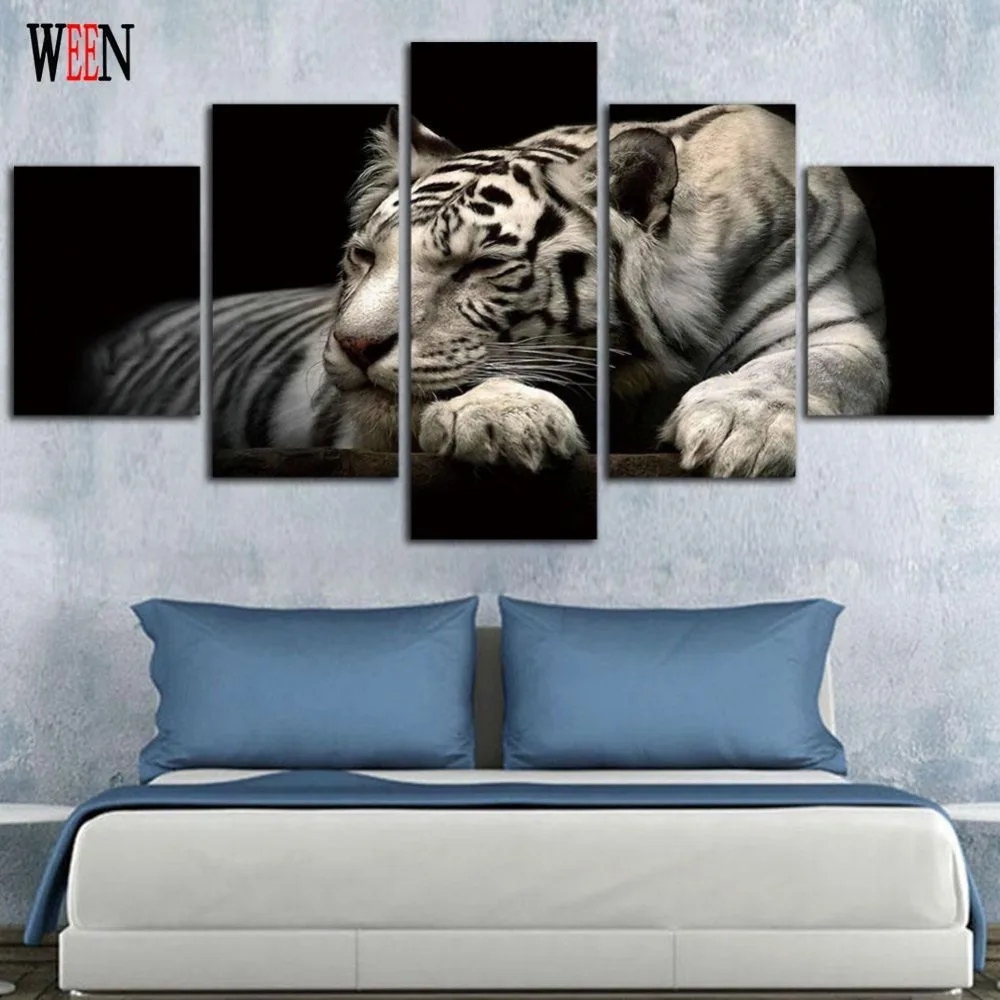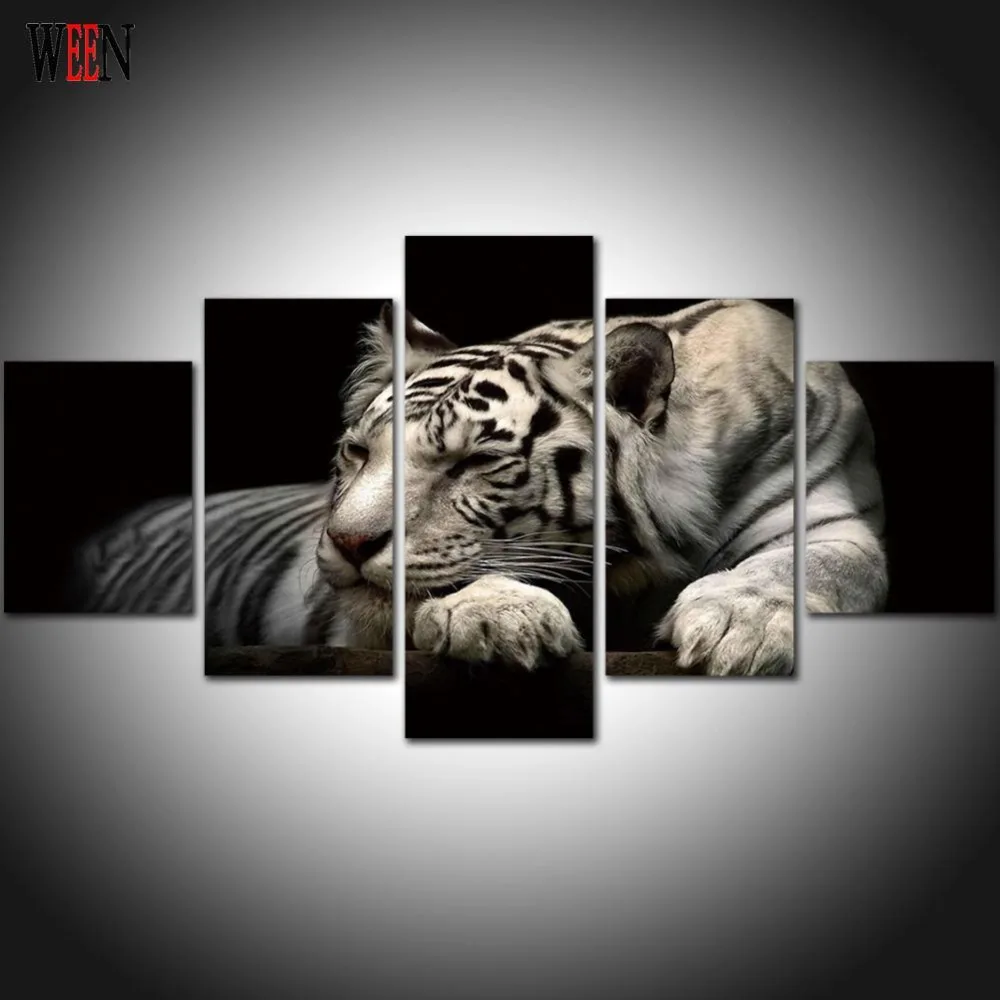 Comprar 5 Peça Tigre Artes Lona Pintura Home Decor Parede Pictures Para Sala Modular Pictures Cuadros Decoracion Presente Quente Baratas Online Preço.