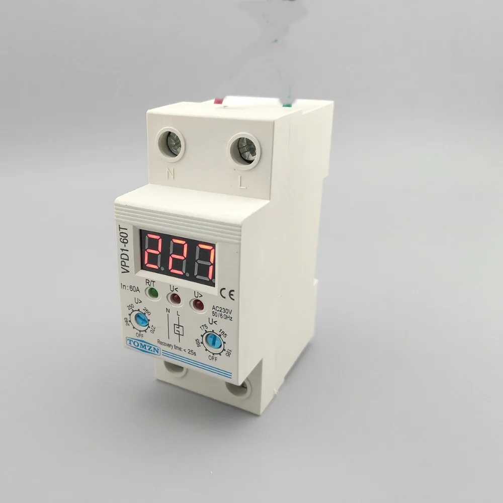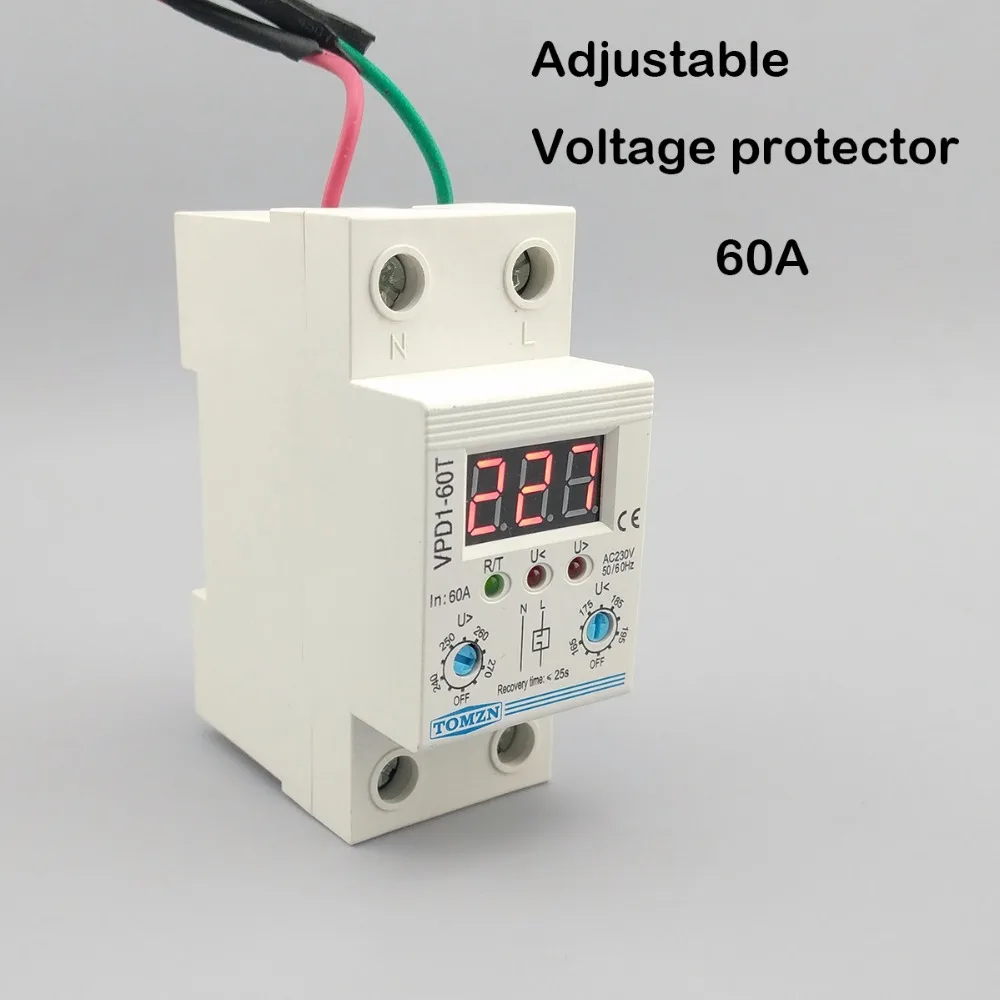Comprar 60A 220 V ajustável dispositivo de reconexão automática sobre a tensão e sob a proteção da tensão relé com Voltímetro tensão monitor Baratas Online Preço.