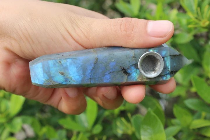 . Melhor 74 gramas de quartzo natural de cristal cura labradorite cachimbo A88 Barato Online Preço.