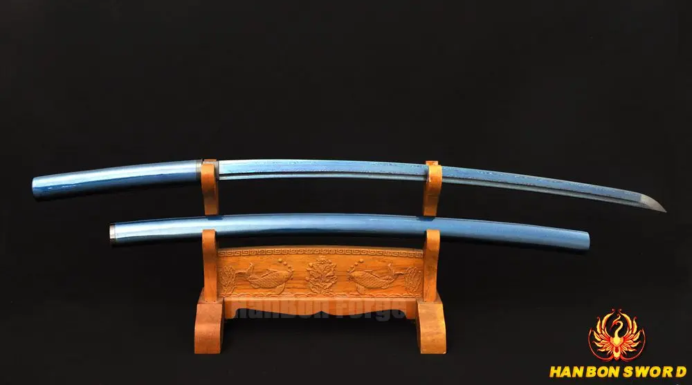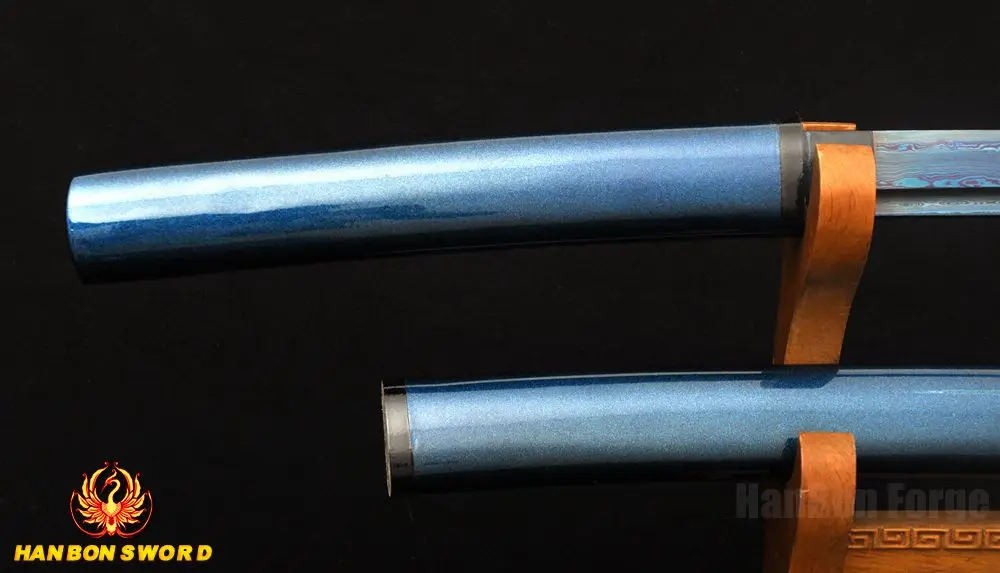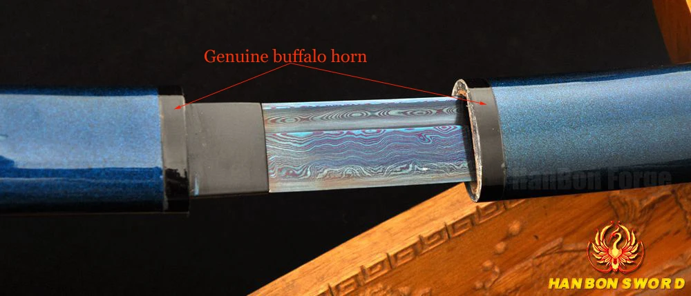 Comprar Azul Lâmina Da Espada do Samurai Katana Damasco Dobrado Aço Japonês Com Chifre de Touro Bainha especial Tratada Madeira Dura Batalha Pronto 41\" Baratas Online Preço.