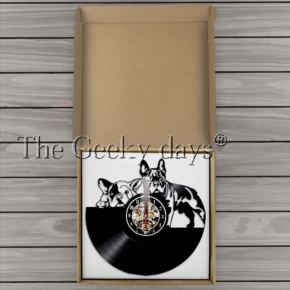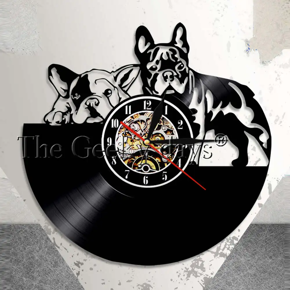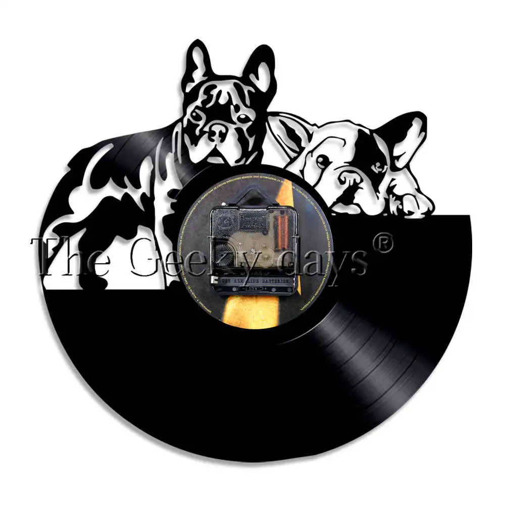 Comprar Buldogue francês Casal Wall Art Home Decor Relógio de Parede Feito De Registro de vinil Os Donos de Cães Da Raça Do Cão Filhote de Cachorro Cão Relógio De Parede Moderna presente Baratas Online Preço.