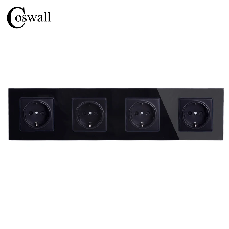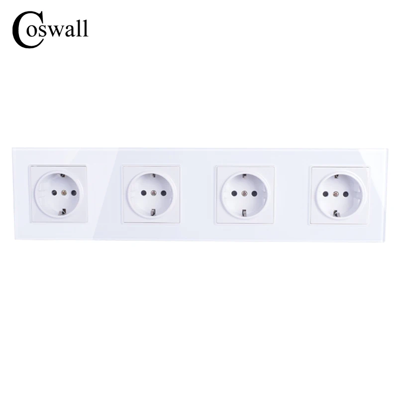 Comprar COSWALL Painel de Vidro de Cristal Parede 4 Maneira Plugue Tomada Aterrada, 16A Elétrica Padrão DA UE Quadruple Outlet 344mm * 86mm Baratas Online Preço