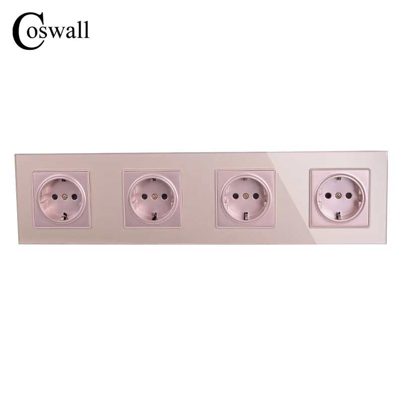 Comprar COSWALL Painel de Vidro de Cristal Parede 4 Maneira Plugue Tomada Aterrada, 16A Elétrica Padrão DA UE Quadruple Outlet 344mm * 86mm Baratas Online Preço.