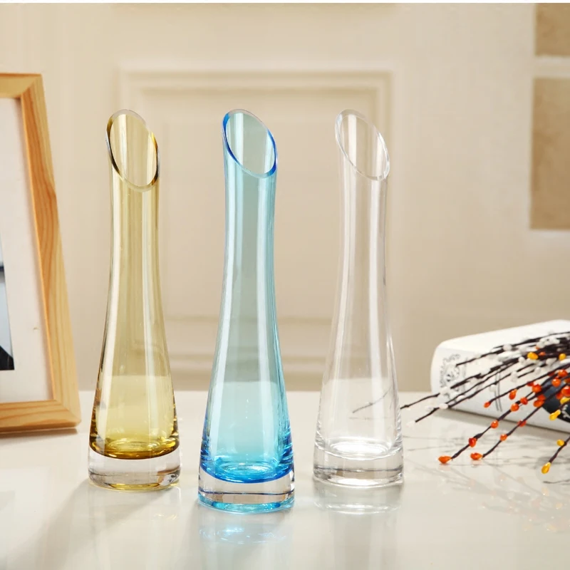 Comprar Criativo Boca Oblíqua Gradiente Cor Enfeites de Decoração Para Casa Vaso de Vidro Decoração Hidropônico Recipiente Titular Garrafa de Plantas Baratas Online Preço.