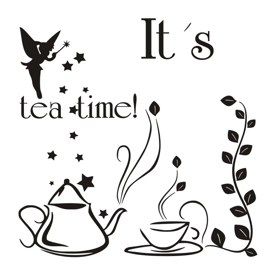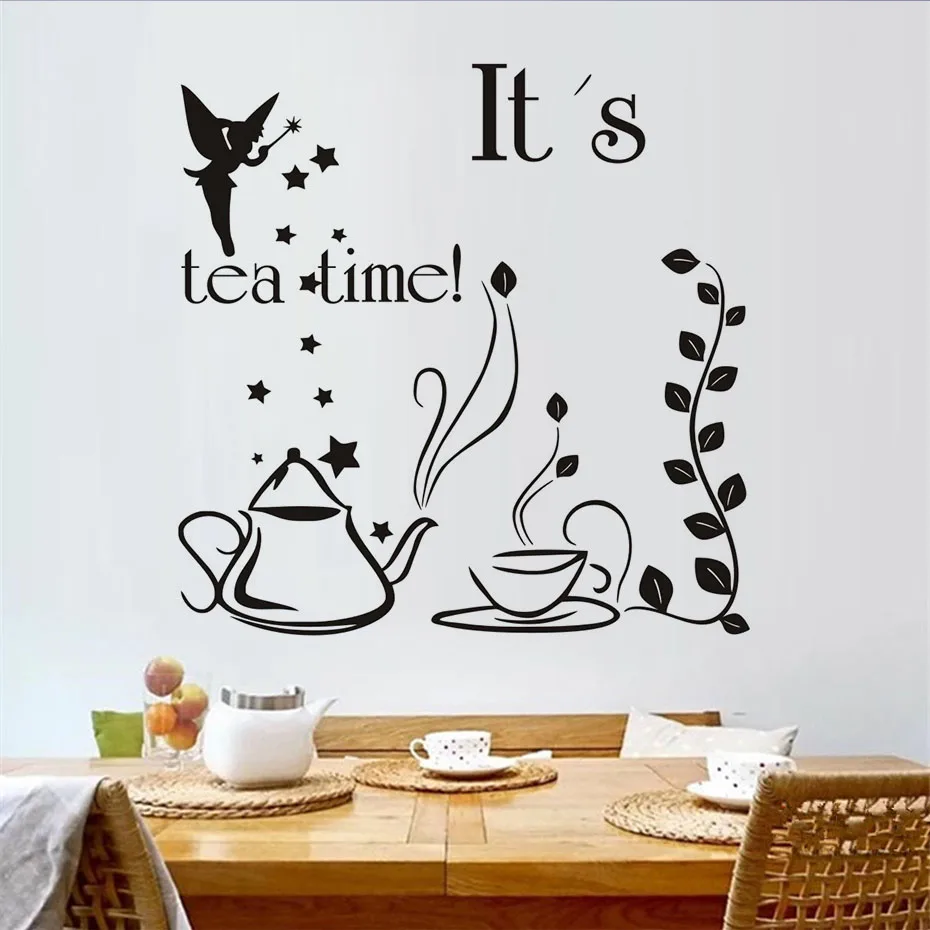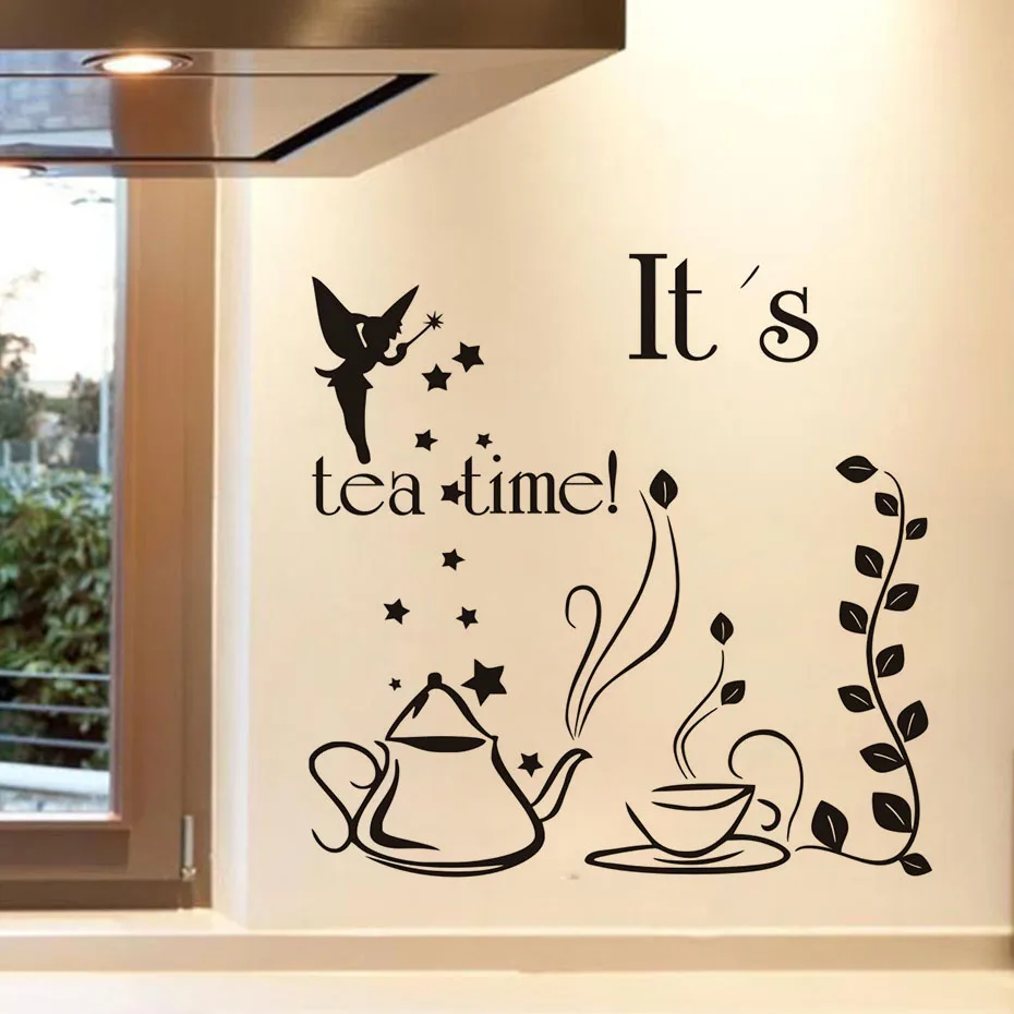Comprar É Hora do Chá de Fadas Com a Varinha de Bule E Xícara Design Criativo Diy Adesivos de Parede Da Cozinha Do Decalque Home Decor Restaurante decoração Baratas Online Preço
