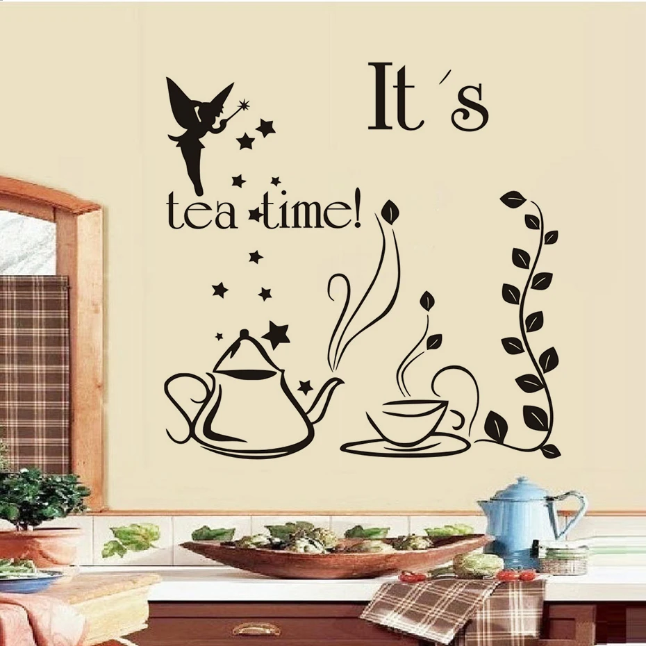 Comprar É Hora do Chá de Fadas Com a Varinha de Bule E Xícara Design Criativo Diy Adesivos de Parede Da Cozinha Do Decalque Home Decor Restaurante decoração Baratas Online Preço.