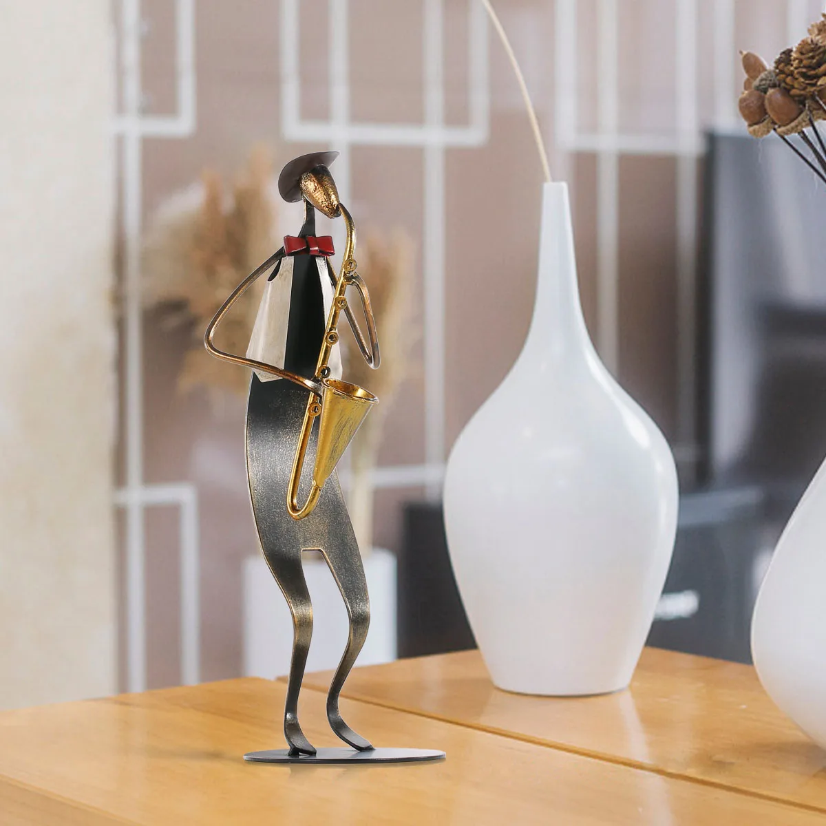 Comprar Escultura Em Metal Do rock and Roll Estilo Cowboy Banda Saxofone Saxofone Música Jogando Ferro Escultura Tecnologia de Pintura de Cozimento Baratas Online Preço.