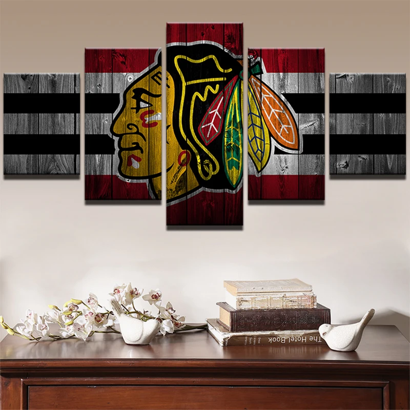 Comprar Frame de retrato Moderno Estilo de Decoração Impresso Poster Sala Pintura da Lona Arte Da Parede 5 Painel de Esportes de Hóquei No Gelo Blackhawk PENGDA Baratas Online Preço