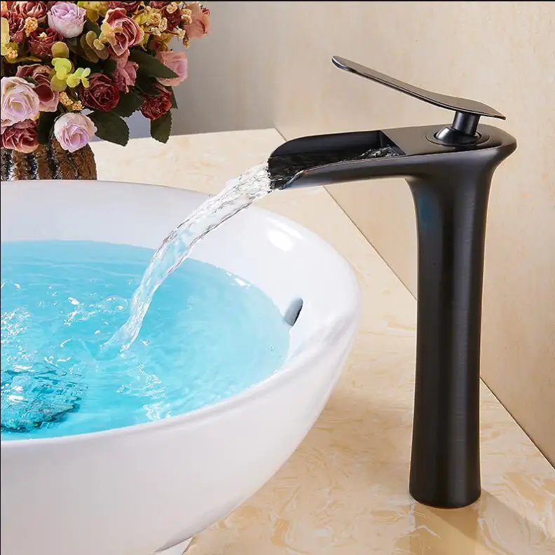 Comprar Frete grátis Chrome white Alto Cachoeira Torneira Do Banheiro de Bronze Torneira Do Banheiro Bacia Sink Faucet Tap Mixer Hot Cold torneira Baratas Online Preço.