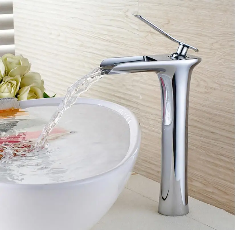 Comprar Frete grátis Chrome white Alto Cachoeira Torneira Do Banheiro de Bronze Torneira Do Banheiro Bacia Sink Faucet Tap Mixer Hot Cold torneira Baratas Online Preço
