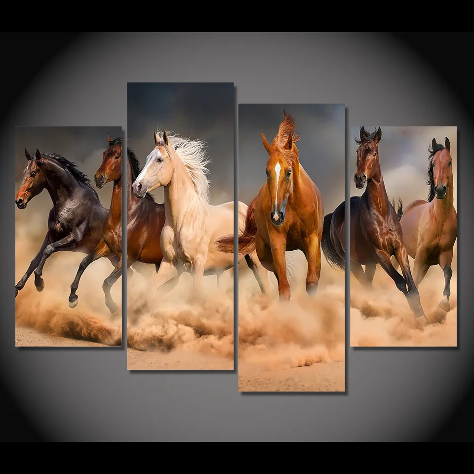 Comprar HD impresso 4 peça canvas art Animais cavalos runing pintura parede pictures para sala de estar moderna frete grátis CU 1622A Baratas Online Preço.