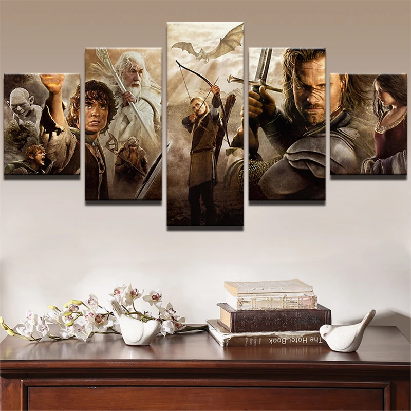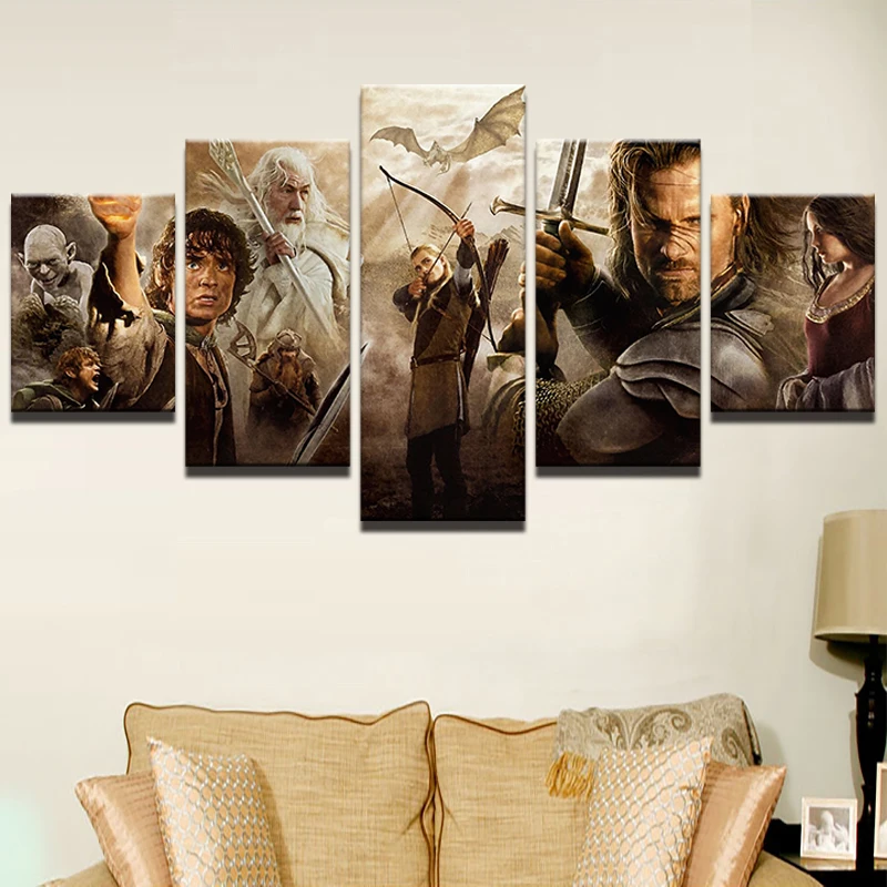 Comprar Lona Pintura A óleo Fotos Cartaz Quadro 5 Painel de Arte Da Parede Decoração Da casa De Lord Of The Rings Personagens Do Filme Impresso Moderno PENGDA Baratas Online Preço.