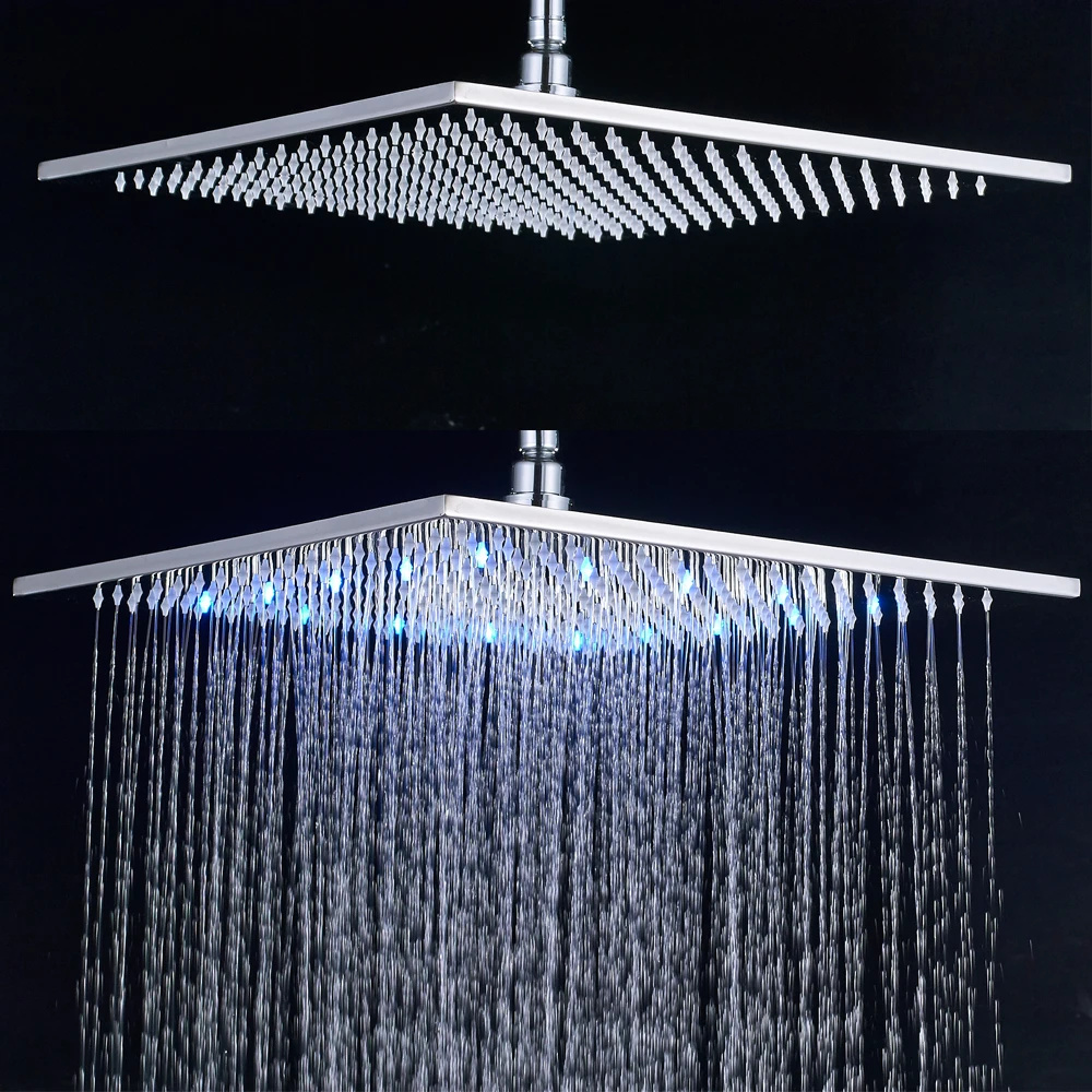Comprar Luxo de Níquel Escovado LED 16 \"Quadrado do Aço Inoxidável Chuvas Cabeça de Chuveiro Em Mudança Da Cor Luzes Chuveiro Baratas Online Preço.