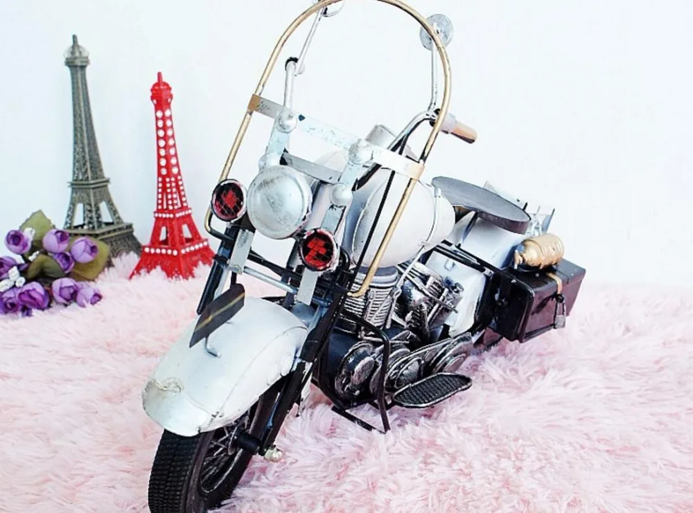 Comprar Luxuary Afligido do vintage retro antigo clássico da motocicleta modelo hand made do ofício para enfeites de decoração de casa bar café Baratas Online Preço