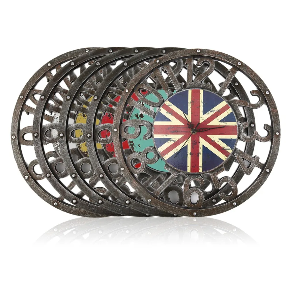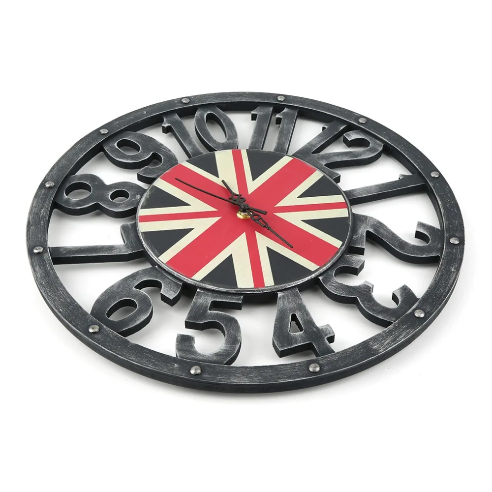 Comprar Madeira 1 pc Retro EUA REINO UNIDO Bandeira Relógio de Parede Pendurado Oco Número Da Placa Da Agulha Relógio Home Office Decor Relógio de Parede reloj de pared Baratas Online Preço.