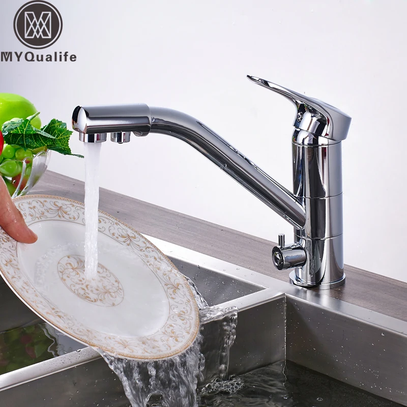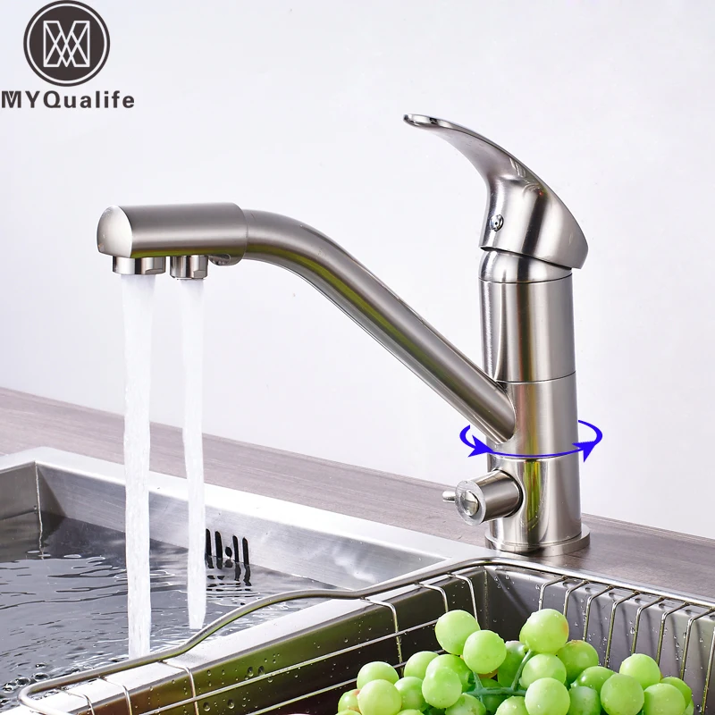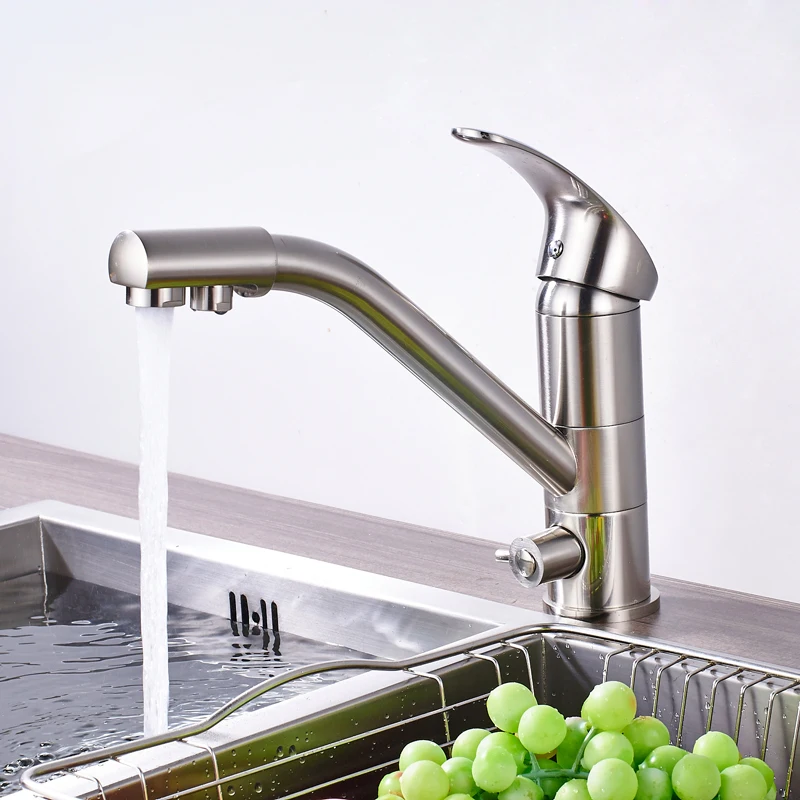 Comprar Níquel escovado Torneira Da Cozinha Beber Handle Dupla Banheiro Pia Da Cozinha Quente e Fria Torneiras Misturadoras de Água Pura de Um Buraco Baratas Online Preço.