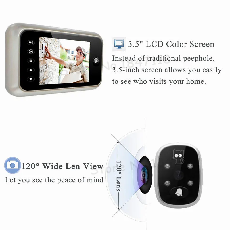 Comprar Novo 3.5 \"Tela Colorida de LCD Eletrônico Campainha Da Porta Câmera Olho Mágico Da Porta Espectador RI Noite Foto Gravação de Vídeo Digital câmera da porta Baratas Online Preço.
