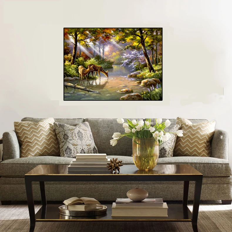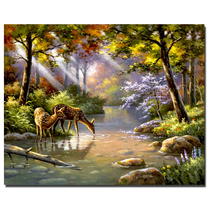 Comprar PHKV Pintura by Numbers Diy Digital Pintura A Óleo Retrato do Desenho Para Colorir Por Números Sobre Tela Pintura de Parede Paisagem Da Floresta Fulvo Baratas Online Preço