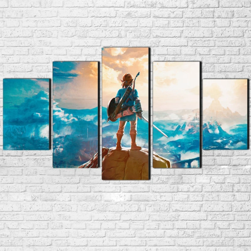Comprar Pintura Da Lona Arte Da Parede Fotos Quadro Modular Sala Decor 5 peças Legend Of Zelda Jogo Personagens Dos Desenhos Animados do Cartaz PENGDA Baratas Online Preço.