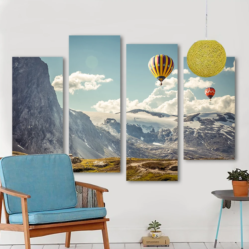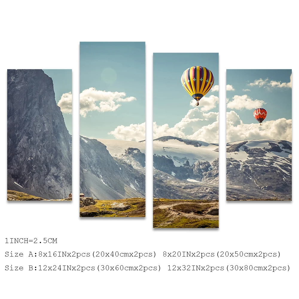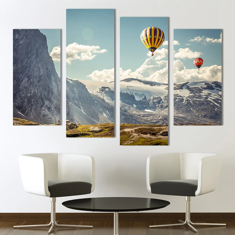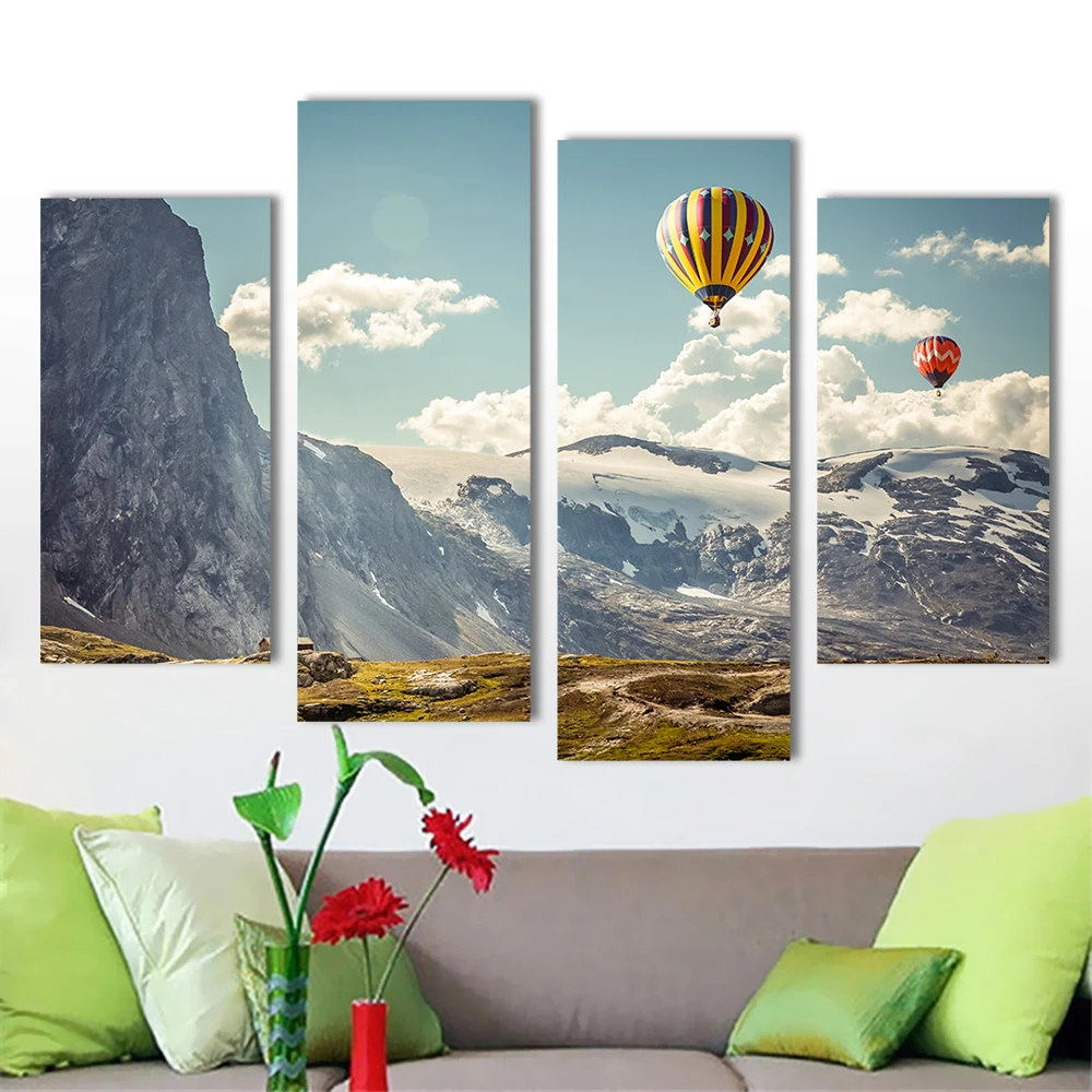 Comprar QKART 4 pcs painéis Pintura de Paisagem Da Arte Da Lona Parede Pictures for Living Room Home Decor Balões No Frame TH052 Islândia Baratas Online Preço.