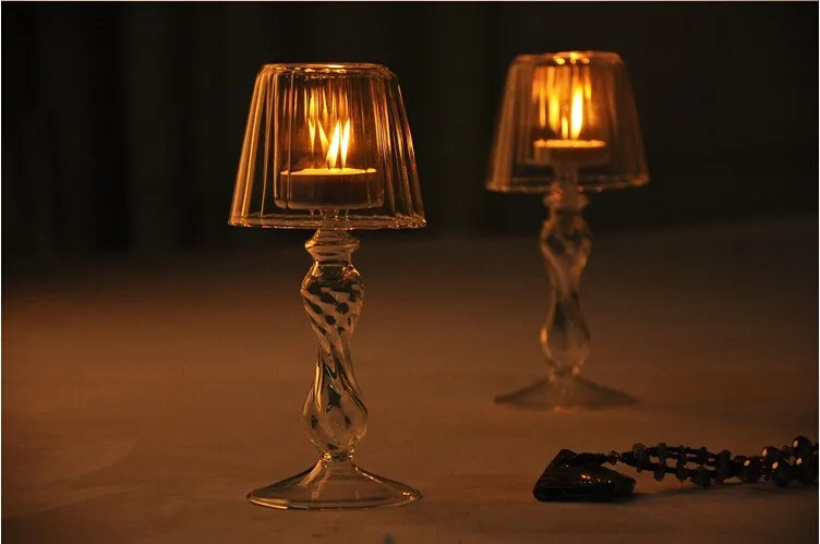 Comprar Tampo da mesa de Cristal Romântico Castiçal Suporte de Vela de Cristal Com Máscara de Lâmpada Transparente Ornamento Do Casamento Do Natal Luz de Velas Baratas Online Preço.