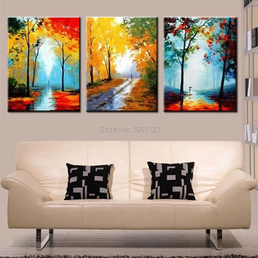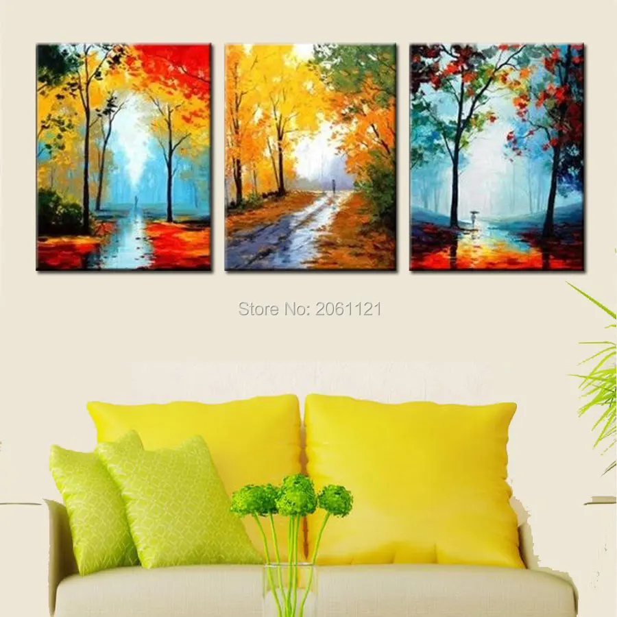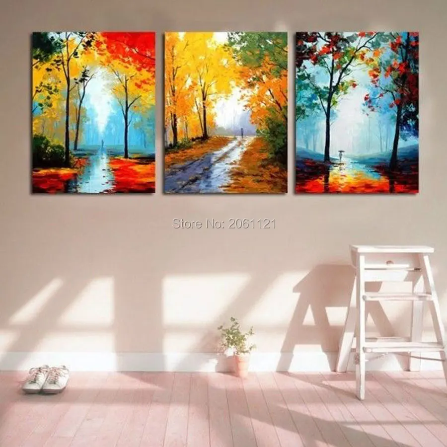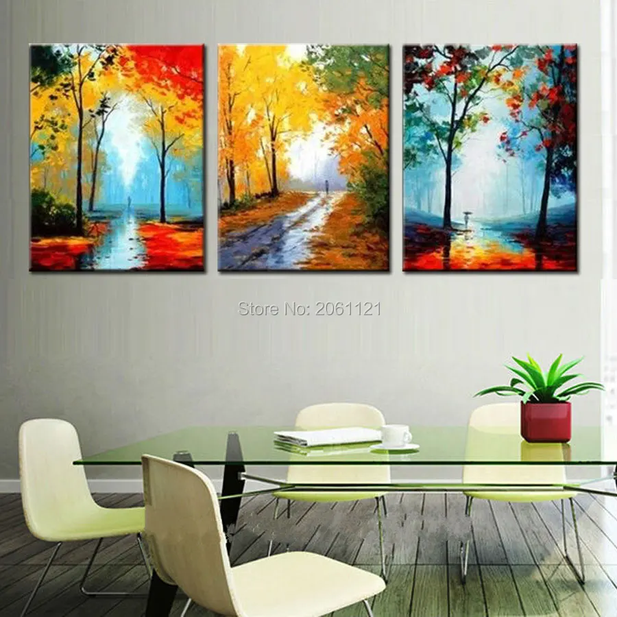 Comprar Temporada pintura de paisagem mão abstrata imagem da floresta Impressionista Pintura A óleo da lona cenário estrada autwun arte da parede decorativo Baratas Online Preço.