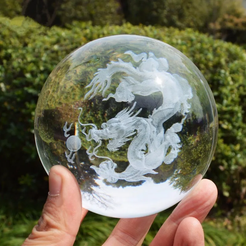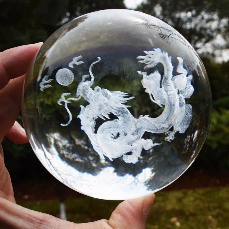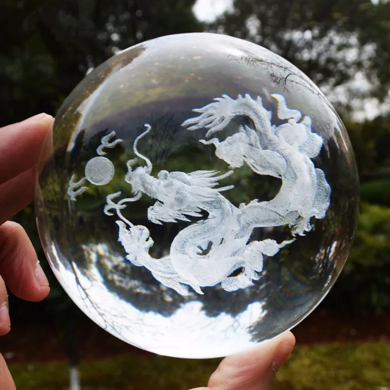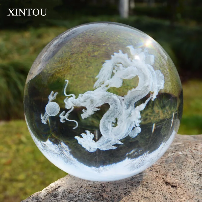 Comprar XINTOU 3D Laser Gravado Dragão Estatueta Bola Dragão Chinês Feng Shui lore Tempestade de Vidro Mármores Bolas de Cristal Esfera Dragonball Baratas Online Preço.