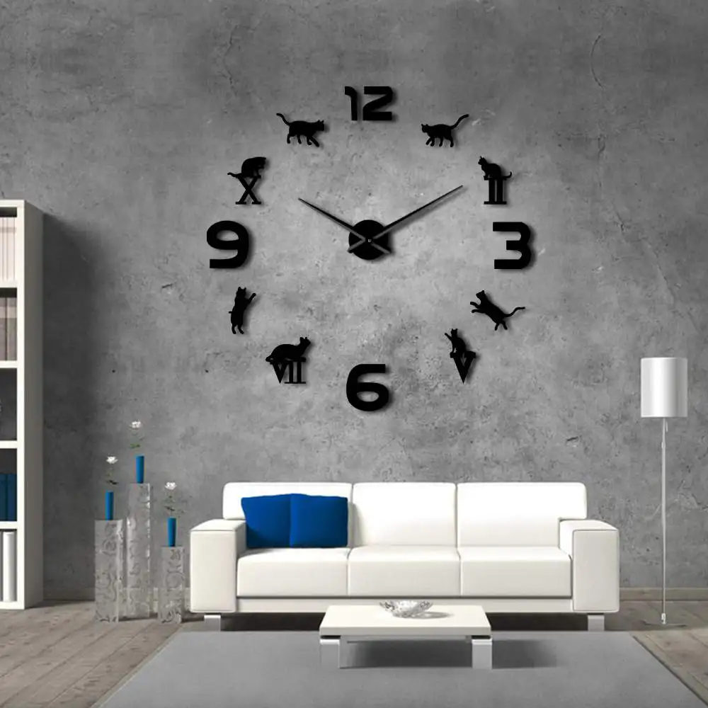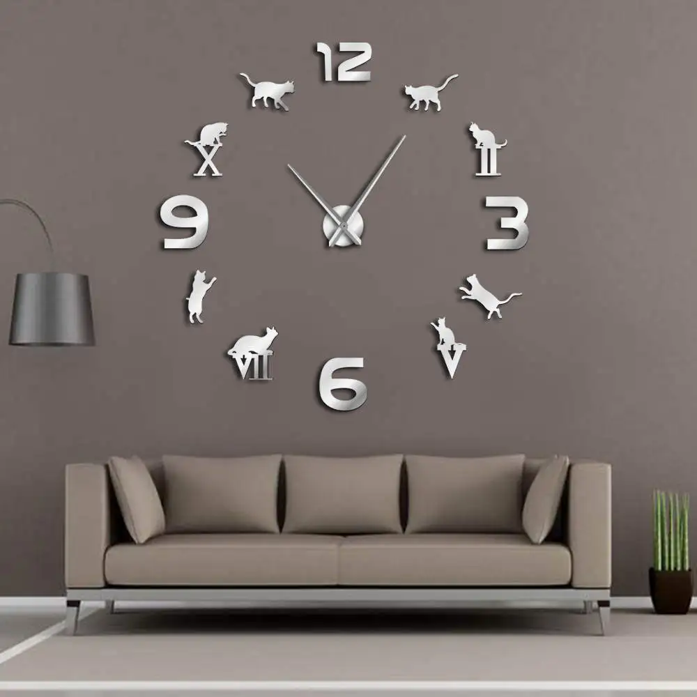 Comprar 1 Piece Roman Numerais Arábicos DIY Mista Grande Kitty Cat Projeto Animal Home Decor Relógio de Parede Moderno Relógio de Parede Tempo relógio Baratas Online Preço.