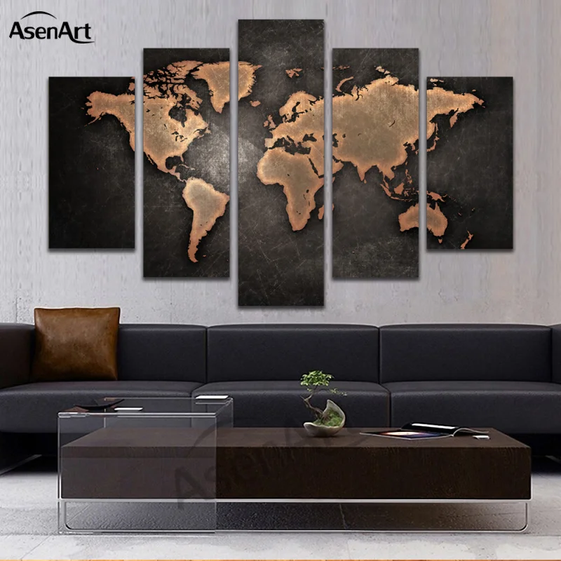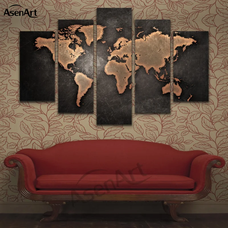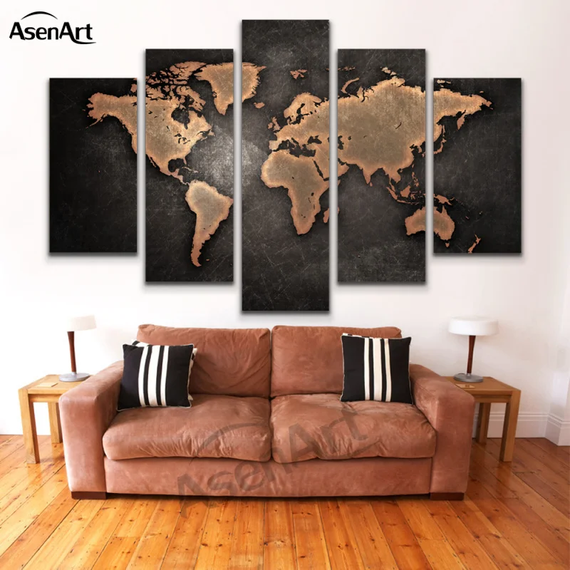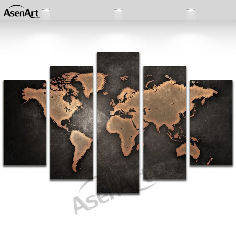 Comprar 5 painel Pintura Da Lona Mapa Do Mundo Do Vintage Prints On Canvas Wall Art Imagem Decoração para Sala de estar Sem Moldura Baratas Online Preço.
