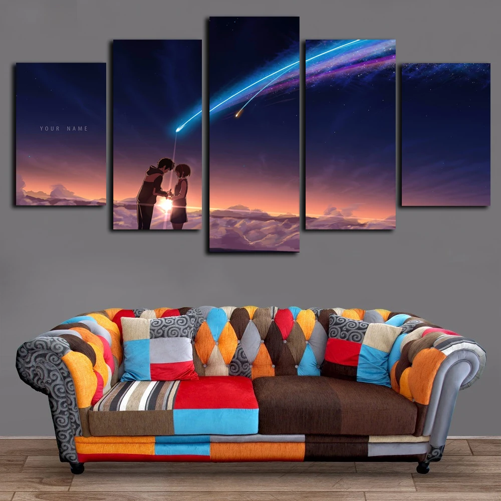 Comprar 5 Peças HD Impressão Pintura Da Lona Pintura Moderna do Filme O Seu Nome (wa Kimi no Nd) Canvas Wall Art Home Decor Para Sala de estar Baratas Online Preço.