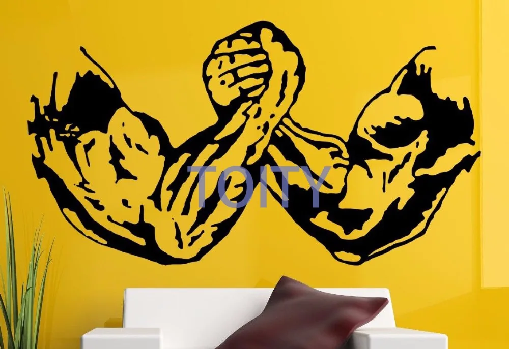 Comprar Academia de Musculação Adesivo Armwrestling Decalque Do Vinil Da Parede Da Sala Decor Art Mural H54cm x W100cm Baratas Online Preço.