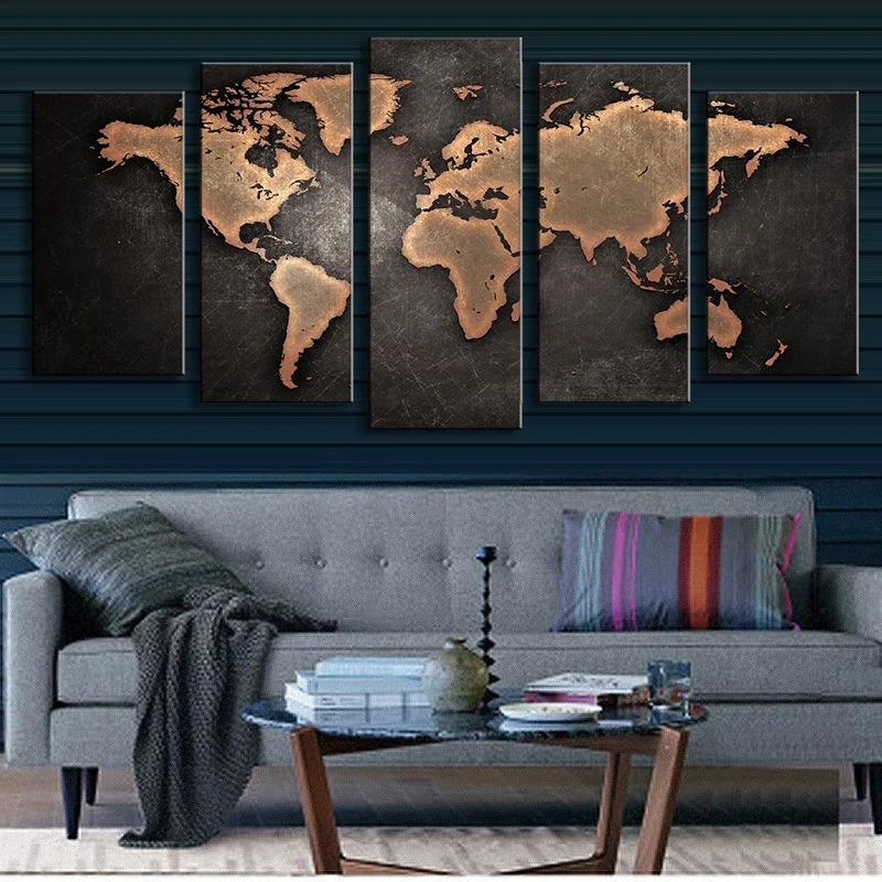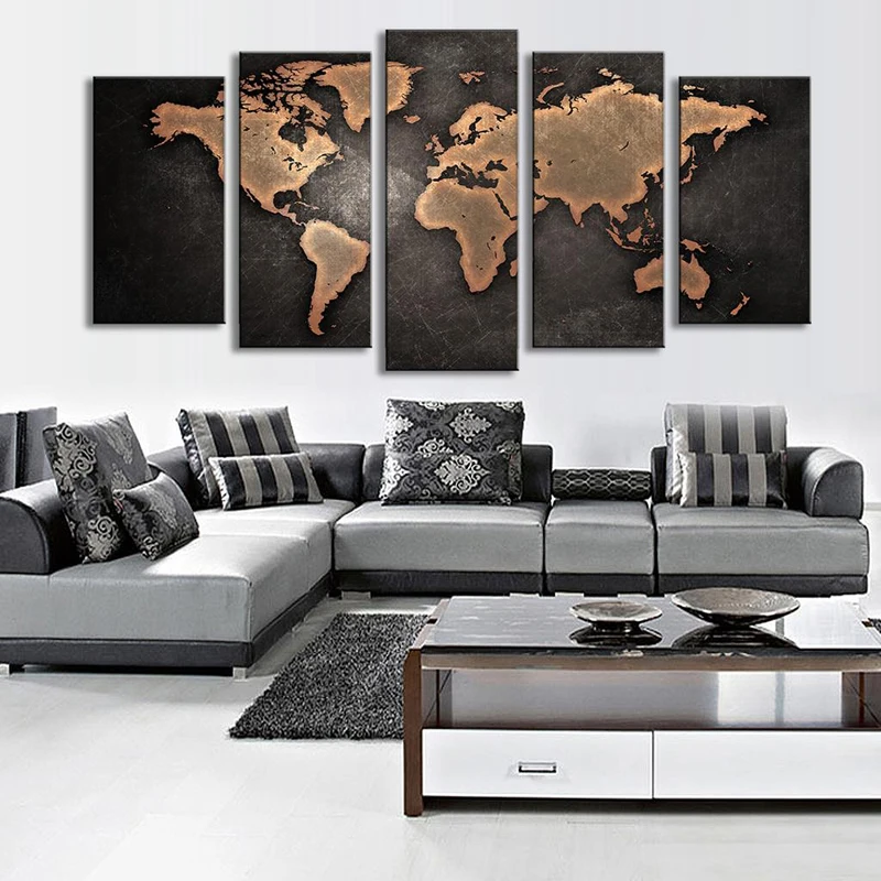Comprar Arte da Parede Da lona Decoração Da Parede Mapa Do Mundo 5 Peça Mapa grande Pintura Abstrata Da Arte Da Lona Do Grunge Do Vintage Rústico Fundo fotos Baratas Online Preço.