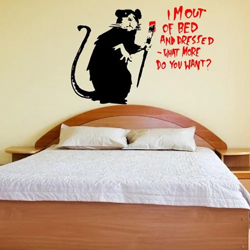 Comprar Banksy I \"m para fora da cama e vestida, o que mais você quer de Parede Adesivos de parede arte mural papel de parede 70*80 CM Frete grátis Baratas Online Preço.