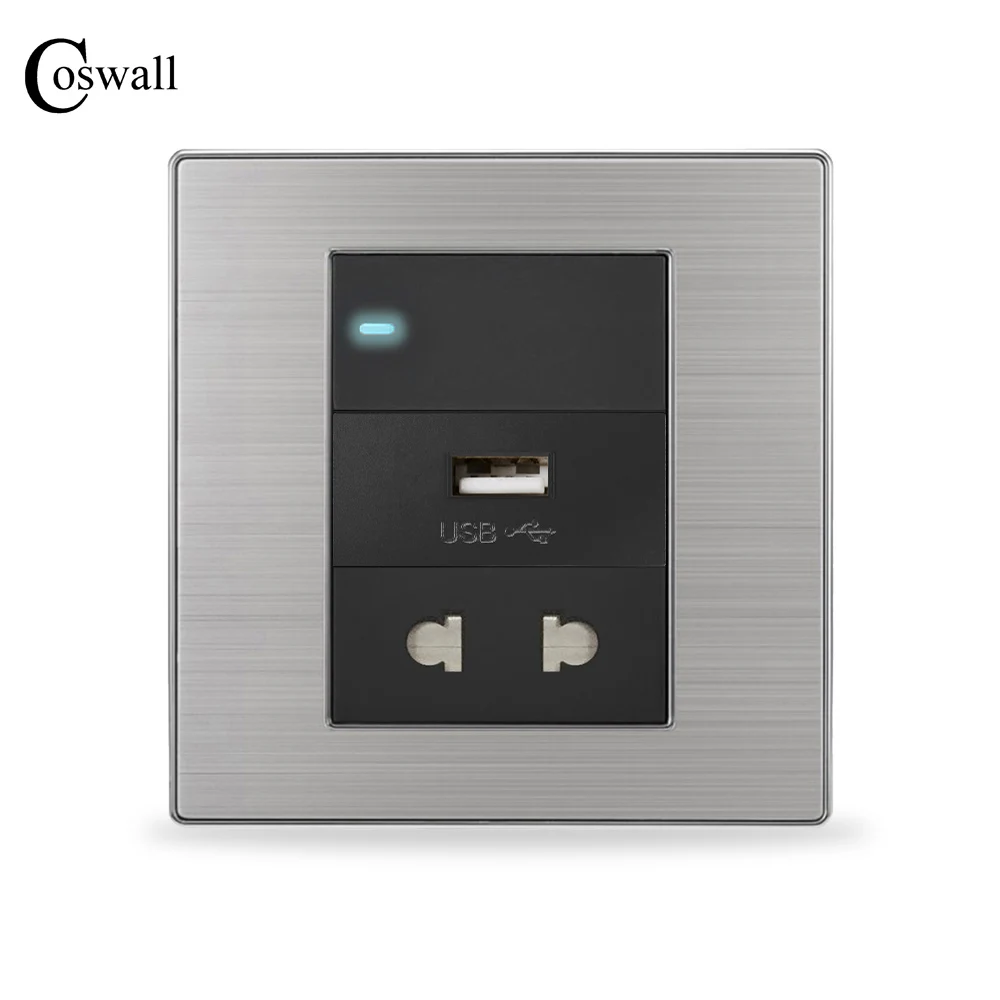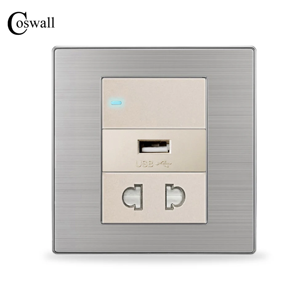 Comprar Coswall USB Porto De Carregamento Para O Telefone Móvel + Universal 2 Furos Tomada de parede + 1 Gangue de 2 Vias Interruptor de Luz Com LED indicador Baratas Online Preço.