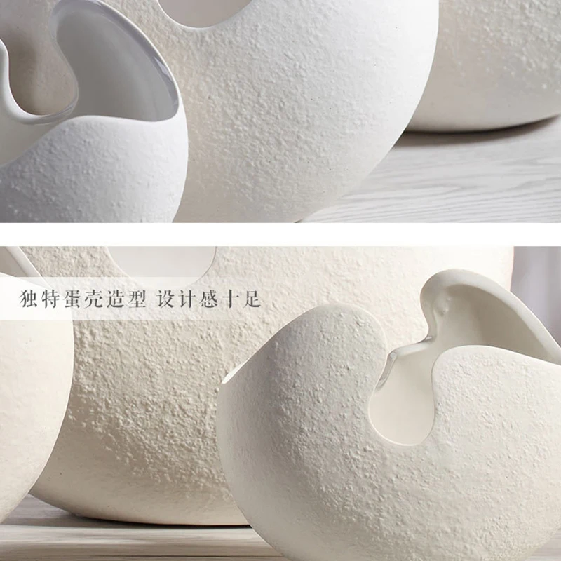 Comprar Criativo artesanal Vaso de Cerâmica Branca Moderna Estátua de Ovo Em Forma de Concha Para Casas Decorações Matt Terminou Unglazed Vaso de Flores Vaso Baratas Online Preço.