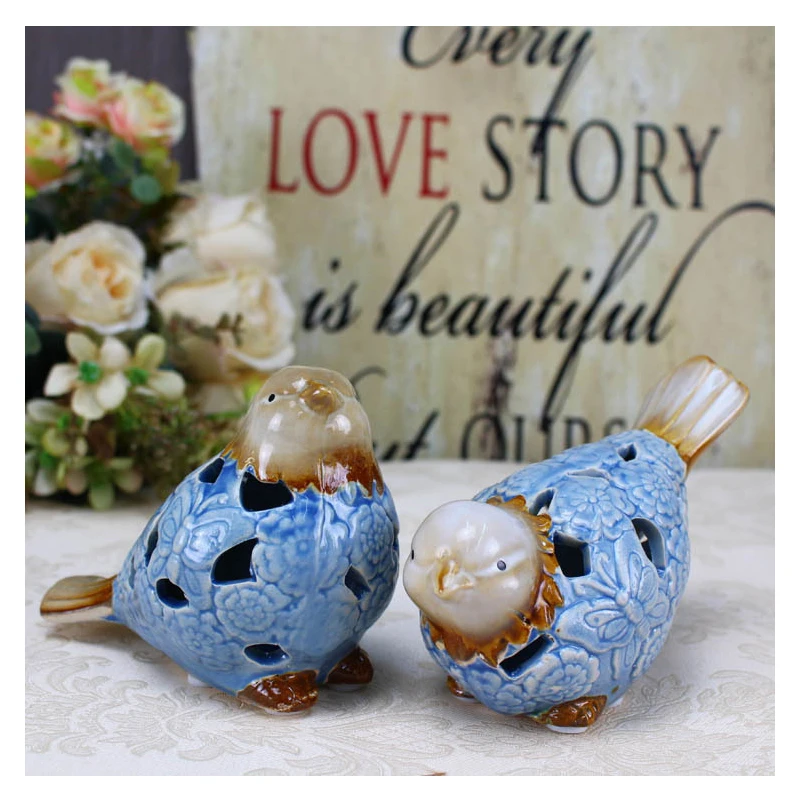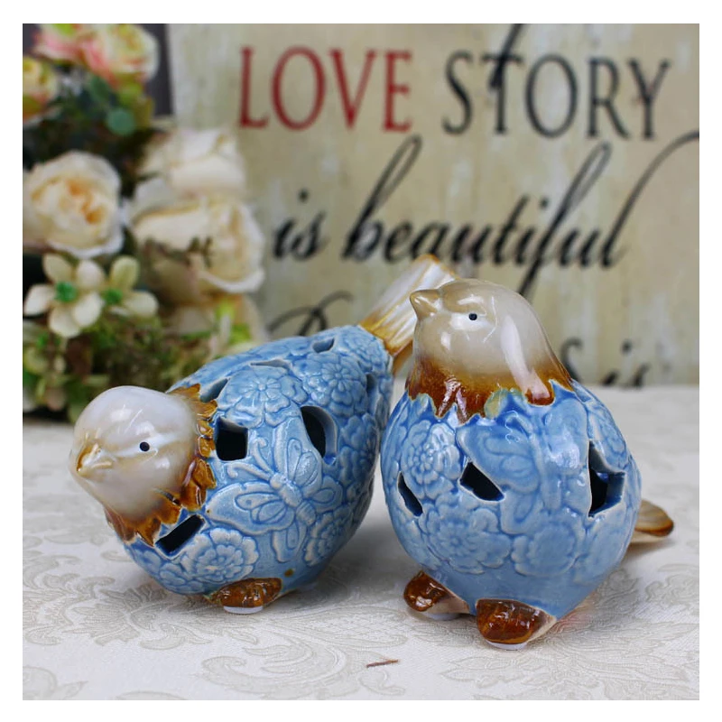 Comprar Europa Cor Principal Par Enfeites de Aves de Cerâmica Artesanato Ornamento Pássaro de Animais Em Miniatura Estatueta Presentes de Decoração Para Casa Acessórios Baratas Online Preço.
