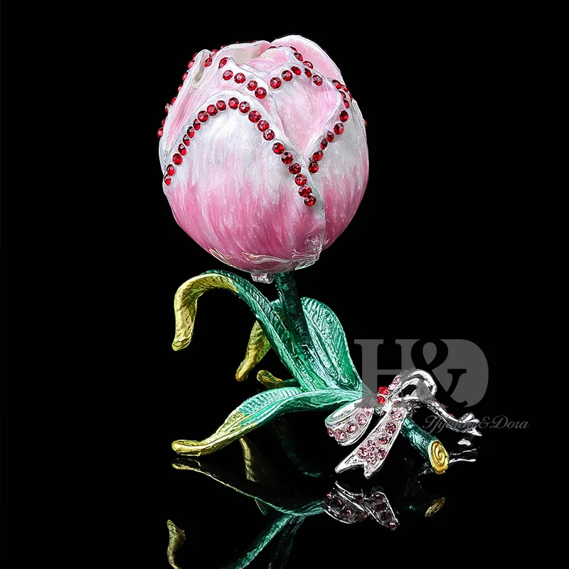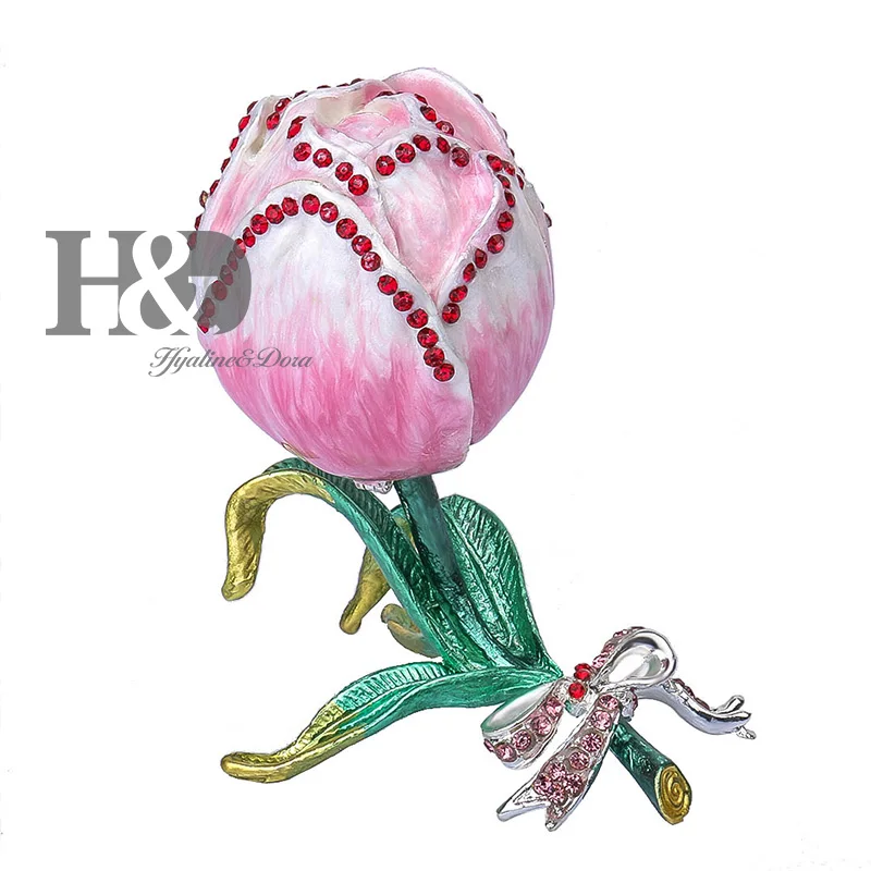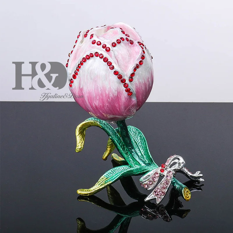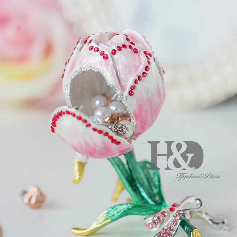 Comprar H D 3.4 Tulipa Articulada Caixa Do Trinket Ornamentais Mão pintado Trinket Bejeweled Caixa Decoração Com Cristal Collectible presentes de natal Baratas Online Preço.