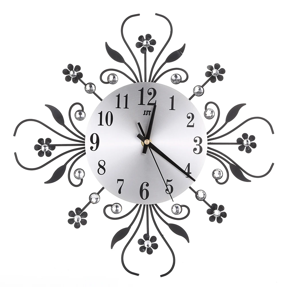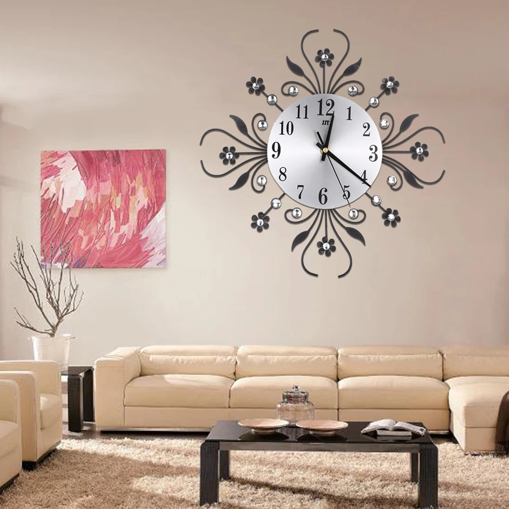 . Melhor Incrustada Flor de Diamante de Luxo Relógio De Parede Do Metal Do Vintage Grande Relógio de Parede Sala de estar Quarto de Silêncio Wandklok Morden Decoração Da Sua Casa Barato Online Preço.